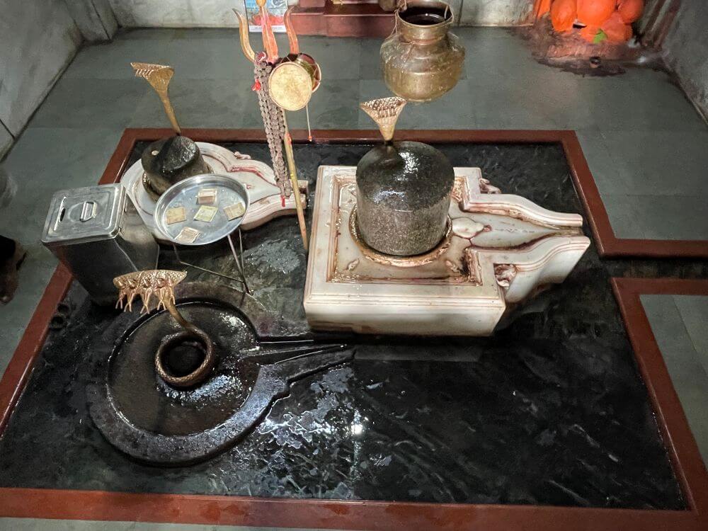 पुढे गर्भगृहाच्या प्रवेशद्वारास पर्णलता व पुष्पलता नक्षी असलेल्या तीन द्वारशाखा आहेत. ललाटबिंबावर गणपती व ललाटपट्टीवर पुष्पलता कोरलेली आहे. मंडारकावर कमळ फुलांची नक्षी आहे. गर्भगृहातील जमीन सभामंडपापेक्षा खोलगट असल्याने आत उतरण्यासाठी पायरी आहे. गर्भगृहात तीन शिवपिंडी व बाजूला त्रिशूल–डमरू आहेत. जमिनीसलग असलेली काळ्या पाषाणातील शिवपिंडी कपिल मुनींनी स्थापित केलेली आहे. त्याशेजारी संगमरवरी शाळुंका असलेल्या दोन पिंडी नंतरच्या काळातील असल्याचे सांगितले जाते. गर्भगृहातील देवकोष्टकात पार्वतीची मूर्ती व भिंतीलगत गणपती आहे. बंदिस्त गर्भगृहाच्या भिंतींत दीपहस्त व गवाक्ष आहेत.