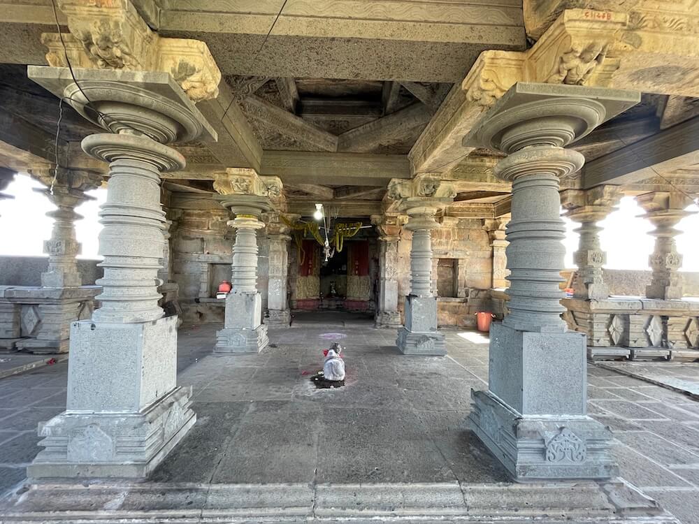गावापासून काही अंतरावर असलेल्या या मंदिरापर्यंत जाण्यासाठी पक्की सडक आहे. हे मंदिर सुमारे चार फूट उंच जगतीवर बांधलेले आहे. जगतीवर चढण्यासाठी कोरीव पाषाणात बांधलेल्या सुमारे पाच पायऱ्या आहेत. तीन दिशांना तीन मुखमंडप, सभामंडप, अंतराळ व गर्भगृह अशी मंदिराची रचना आहे. या तिन्ही मुखमंडपांसमोर प्रत्येकी पाच पायऱ्या आहेत. पायऱ्यांच्या दोन्ही बाजूस सुरक्षा कठडे व चौथरे आहेत. मुखमंडपात प्रवेशद्वाराच्या दोन्ही बाजूला कठडे आहेत, ज्यात भाविकांना बसण्यासाठी कक्षासने आहेत. कक्षासनांत आठ अर्धस्तंभ चौकोनी स्तंभपादावर उभे आहेत. स्तंभदंडात चौकोन, षट्कोन, अष्टकोन आणि वर्तुळ असे भौमितिक आकार आहेत. स्तंभांच्या शीर्षभागी कणी आणि त्यावर हस्त आहेत. हस्तांवर छताचा भार तोलून धरणारी भारवाहक यक्षांची शिल्पे कोरलेली आहेत. येथील वितानावर चक्राकार नक्षी आहे. मुखमंडपाचा भाग पुरातत्त्व विभागाने पुनर्निर्मित केला असल्याने तो मंदिराच्या इतर भागापेक्षा नवा वाटतो. मुखमंडपातील जमीन सभामंडपातील जमिनीपेक्षा काही इंच उंच आहे.
