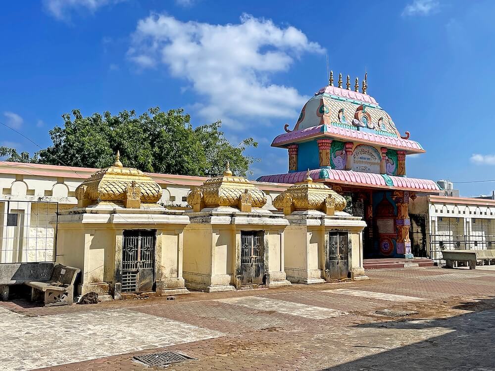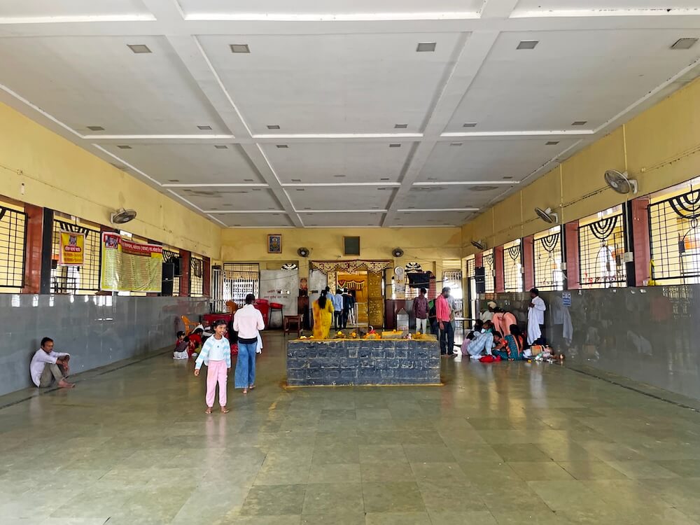 मंदिराच्या अलीकडील काळात बांधलेल्या दुमजली सभामंडपाच्या प्रवेशद्वारासमोर चौथऱ्यावर प्राचीन बांधणीची दगडी गोलाकार दीपमाळ आहे. प्रांगणापेक्षा उंचावर असलेल्या सभामंडपात येण्यासाठी पाच पायऱ्या आहेत. बंदिस्त स्वरूपाच्या सभामंडपात हवा खेळती राहण्यासाठी वातायने आहेत. सभामंडपात प्रत्येकी सहा चौकोनी स्तंभांच्या दोन रांगा आहेत. हे स्तंभ सभामंडपाच्या भिंतीत सामावलेले आहेत. स