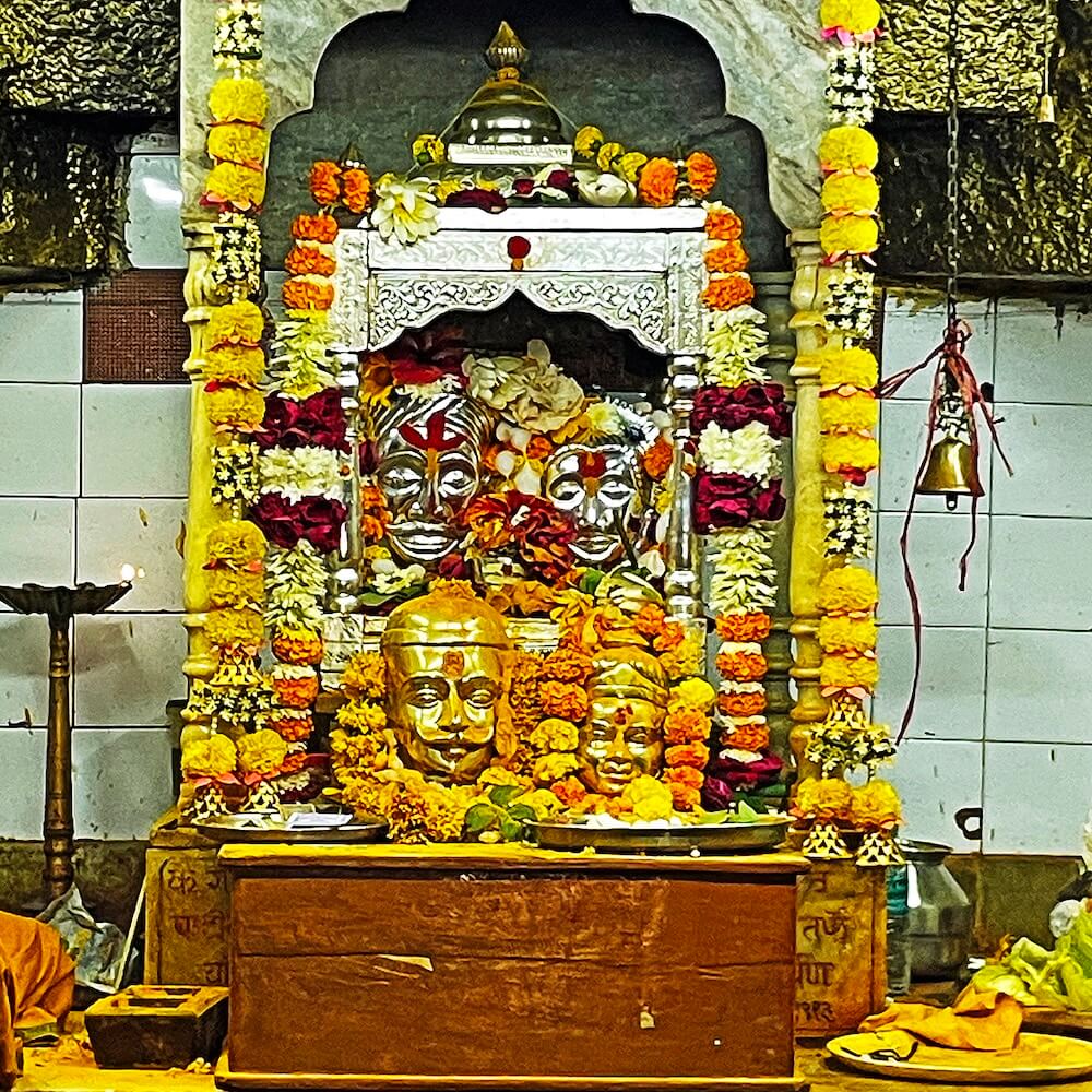 गर्भगृहाच्या प्रवेशद्वाराच्या द्वारशाखांवर उभ्या धारेची नक्षी व ललाटबिंबावर गणपतीचे शिल्प आहे. प्रवेशद्वारात नक्षीदार स्तंभशाखाही आहेत. अंतराळापेक्षा गर्भगृह उंचावर आहे. गर्भगृहात वज्रपीठावर संगमरवरी मेघडंबरी आहे. त्यातील पितळी मखरात खंडोबा–म्हाळसा यांचे दोन मुखवटे आहेत. आणखी दोन मुखवटे त्यापुढे ठेवलेले आहेत. पितळी मखरातील मुखवट्यांखाली खंडोबा व म्हाळसा यांचे स्वयंभू तांदळे आहेत. वज्रपीठाच्या उजव्या बाजूला स्वयंभू शिवलिंग आहे.