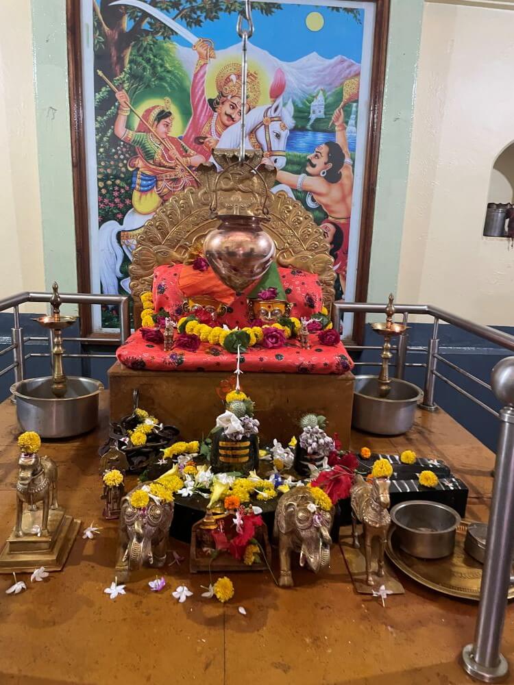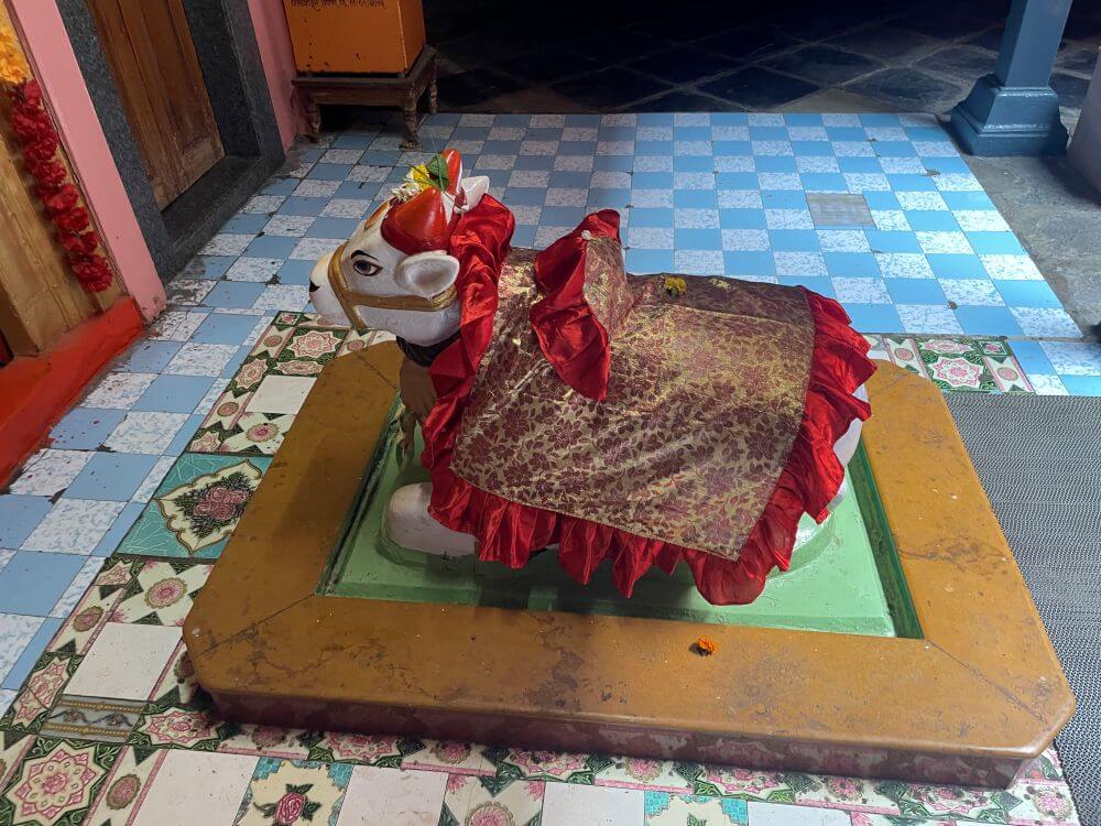 आणले. एका मोठ्या पिंपळाच्या झाडाखाली त्याची स्थापना केली. नंतर येथील एका मगदुम भाविकाने देवासाठी एक वाडा अर्पण केला आणि या वाड्यात मुखवट्यांची स्थापना केली. गजबजलेल्या वस्तीत असलेल्या या वाड्याचे रुपांतर कालांतराने मंदिरात झाले.