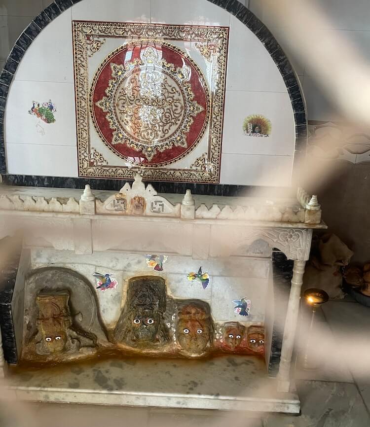 Adjacent to the assembly hall and to the left of the main temple is the shrine of Baniyadev Maharaj. It houses a marble ‘Makhar’ that enshrines Baniyadev’s image alongside other stone idols. A silver ‘Shri Yantra’ is fixed upon the ceremonial headgear (Bashing) of this marble frame. A short distance away in the courtyard stands the Ramji Temple, featuring a three-tiered pedestal (Vajrapitha) with idols of Lord Ram, Lakshman and Janaki at the summit and other deities on the lower tiers. Nearby lies the Kuber Bhandari Temple, containing a ‘Shivpinda’ (auspicious stone of Shiva) on the floor, fronted by a sculpture of ‘Nandi’ (the sacred bull) and a niche containing Goddess Durga.
