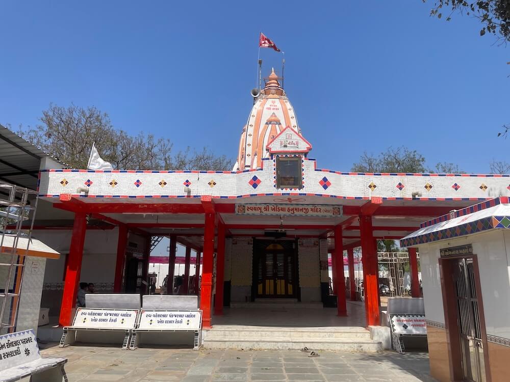 Local lore recounts that in the Puranic era, this entire region formed part of the kingdom of Makardhwaja. It is said that Makardhwaja’s son, Mayurdhwaja, frequently visited the city of Kheda. On his journeys towards Kheda, his chariot would invariably become immobilised at a particular spot; the horses would refuse to proceed, halting firmly on that spot. Perturbed by this recurrent phenomenon, the King sought counsel from his ‘Rajguru’ (royal preceptor). The ‘Rajguru’ revealed that the site was a sacred abode of Hanuman himself, informing the King that a ‘Swayambhu’ (self-manifested) idol of the Lord lay concealed beneath the earth. Acting on this sage advice,