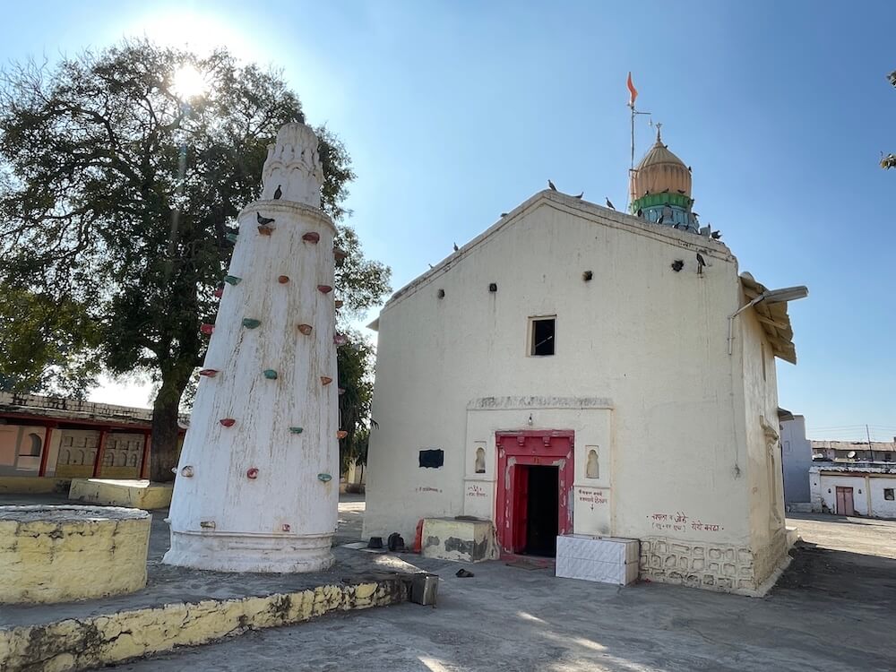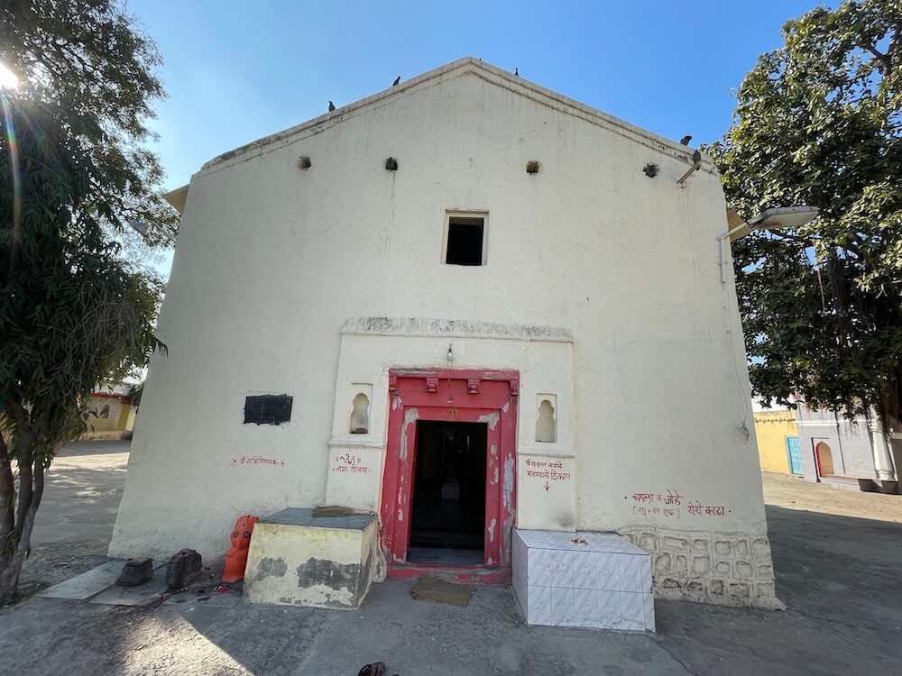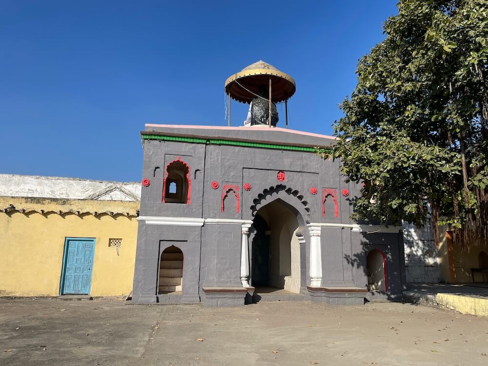 या प्रवेशद्वारातून मंदिराच्या प्रशस्त प्रांगणात प्रवेश होतो. प्रांगणात मध्यभागी किन्ही महादेवाचे मंदिर आहे. या मंदिराच्या समोरील भागात एक लहानशी विहीर व शेजारी वर निमुळता होत जाणारा दीपस्तंभ आहे. त्यापुढे मंदिराचे प्रवेशद्वार आहे. मंदिराच्या दर्शनी भागातील भिंतींवर प्रवेशद्वाराच्या दोन्ही बाजूंना दोन चौथरे व भिंतींत दीपकोष्ठके आहेत. यापैकी डावीकडील चौथरा हा गजानन महाराजांचे बसण्याचे ठिकाण होते, असे सांगितले जाते. ‘श्री गजानन विजय’ ग्रंथातील उल्लेखाप्रमाणे महाराज स्वतः शिवभक्त होते आणि ते परिसरातील अनेक प्राचीन शिवमंदिरांच्या शांत परिसरात ध्यानस्थ बसत असत. किन्ही येथील महादेव मंदिर तेराव्या शतकातील असल्यामुळे आणि त्याचे धार्मिक महत्त्व मोठे असल्याने, या परिसरात महाराज अनेकदा येत असत, असे सांगितले जाते.