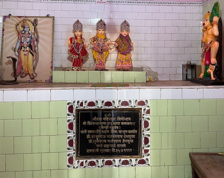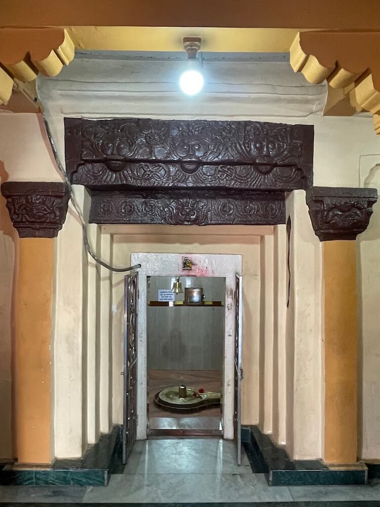गर्भगृहाच्या प्रवेशद्वाराच्या उजवीकडील देवकोष्ठकात विठ्ठल-रखुमाईच्या मूर्ती आहेत. सभामंडपापेक्षा येथील गर्भगृह खोलगट जागेत असल्यामुळे पाच पायऱ्या उतरून गर्भगृहात प्रवेश होतो. गर्भगृहात जमिनीवर स्वयंभू शिवलिंग आहे. स्वयंभू लिंग हे सर्वांत पवित्र मानले जाते, कारण ते निसर्गतः उत्पन्न झालेले असते व अनादी काळापासून ते अस्तित्वात असते. येथील स्वयंभू शिवलिंग रुजी पाषाणाचे म्हणजे भूमीत एकजीव व्हावे, अशा पद्धतीने रुजलेल्या पाषाणाचे आहे. हे स्वयंभू शिवलिंग जागृत आहे आणि त्याच्या दर्शनाने सर्व मनोकामना पूर्ण होतात, अशी भाविकांची श्रद्धा आहे. या शिवलिंगाला नक्षीदार पितळी पत्र्याने मढविलेले आहे. येथील शाळुंकेमध्ये असलेल्या पोकळीत बाराही महिने पाणी असते. येथील सभामंडपावर पत्र्याचे छत व गर्भगृहावर तीन थरांचे वर निमुळते होत जाणारे शिखर आहे. या शिखरावरील देवकोष्ठकांत विविध संत व देवतांच्या मूर्ती आहेत. शीर्षभागी कमलपुष्पासारख्या रचनेत आमलक व कळस आहे. या मंदिराच्या दक्षिणेला बलिश्वराचे मंदिर आहे. परकोटामधील ओवऱ्यांमध्ये गणेश, जगदंबामाता तसेच राम-लक्ष्मण-सीता यांची मंदिरे आहेत.