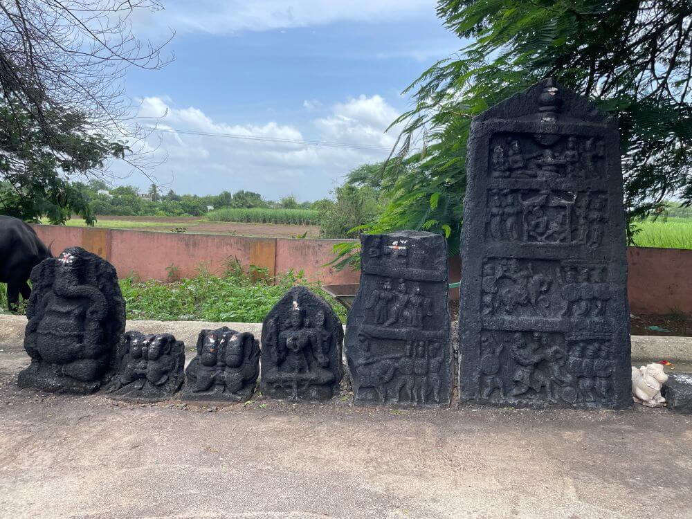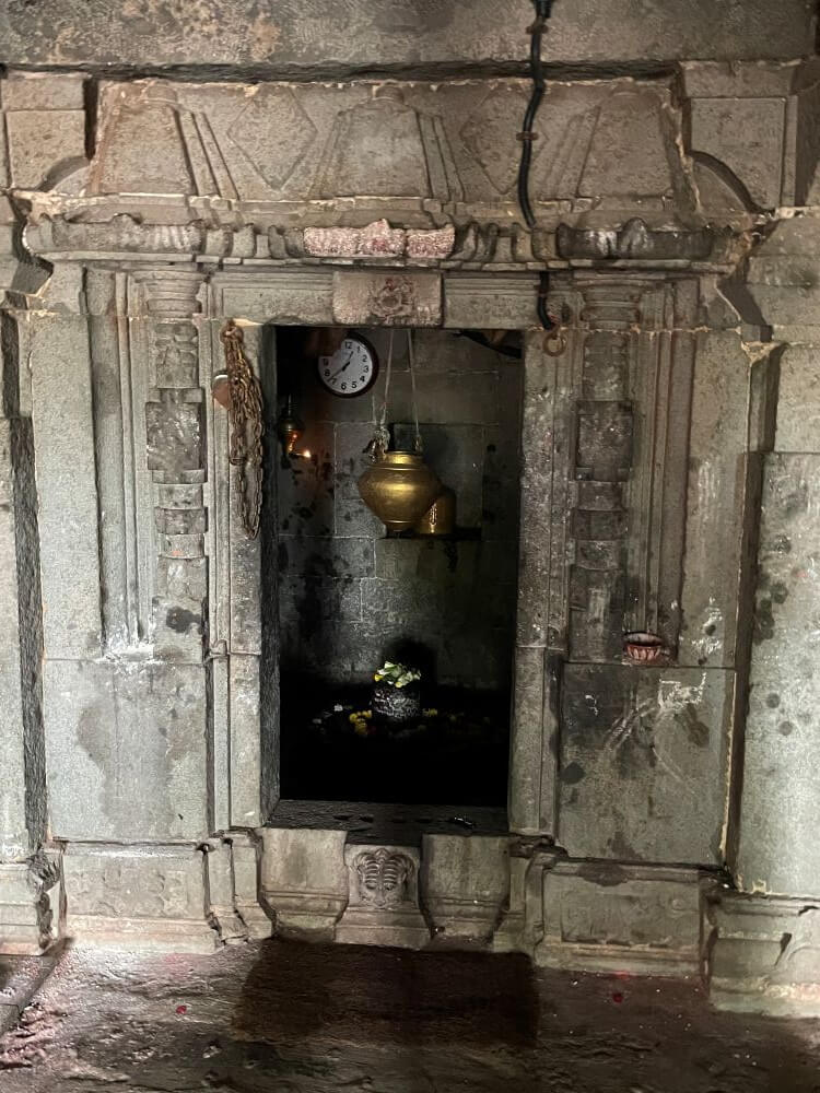 गर्भगृहांच्या द्वारशाखांवर पाना फुलांच्या नक्षी ललाटबिंबांवर गणपतीच्या मूर्ती आहेत. मंदारकावर कीर्तीमुखे आहेत. सर्व गर्भगृहात जमिनीवर मध्यभागी शिवपिंडी त्यावर छत्र धरलेले पितळी नाग आहेत. काही गर्भगृहांत मागील भिंतीलगत पार्वतीच्या प्राचीन मूर्ती नागशिळा आहेत. मुख्य गर्भगृहाच्या छतावर शंकू आकाराचे शिखर आहे. शिखराच्या शीर्षभागी एकावर एक असे दोन आमलक त्यावर कळस आहे. मंदिराच्या शेजारी विठ्ठल रखुमाई यांचे लहान मंदिर आहे. त्यात वज्रपिठावरील विठ्ठल रखुमाई यांच्या मूर्तींच्या दोन्ही बाजूला संत ज्ञानेश्वर तुकाराम महाराज यांच्या मूर्ती आहेत. या मंदिराच्या बाजूला दत्तात्रेयांचे मंदिर आहे. मंदिराच्या प्रांगणात एका चौथऱ्यावर प्राचीन विरगळ सतीशिळा आहेत.