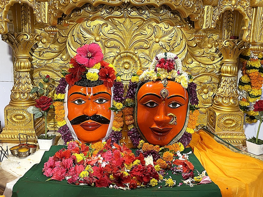 मीना नदी काठावरील या मंदिराचा परिसर रम्य भासतो. मुख्य रस्त्याला लागून असलेल्या या पेशवेकालीन मंदिरात जाण्यासाठी काही पायऱ्या खाली उतरावे लागते. एका भिंतीला वळसा घालून मंदिरात प्रवेश केल्यानंतर तेथील प्रसन्न व तितकेच वैशिष्ट्यपूर्ण असे रेणुका देवी व परशुराम यांचे मुखवटे आहेत. गाभाऱ्यातील सोनेरी मखरात हे दोन मुखवटे शेजारी शेजारी स्थित आहेत.