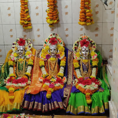 मंदिराचे प्रांगण काहीसे उंचावर व त्यात पेव्हर ब्लॉकची फरसबंदी आहे. या प्रांगणास झाडाझुडपांची नैसर्गिक तटबंदी आहे. मंदिरासमोरील एका चौथऱ्यावर तुलसी वृंदावन आहे. मुख्य मंदिरासमोर प्रशस्त व्हरांडा, सभामंडप व गर्भगृह अशी या कौलारू मंदिराची संरचना आहे. भाविकांच्या सोयीसाठी या व्हरांड्यावर पत्र्याची शेड टाकलेली आहे. येथील सभामंडप अर्धखुल्या स्वरूपाचा आहे. सभामंडपात प्रत्येकी चार चौकोनी स्तंभांच्या चार रांगा आहेत. हे लाकडी स्तंभ पाषाणी स्तंभपादांवर उभे आहेत व या स्तंभांच्या वरील बाजुस तुळया आहेत. येथील छतावर अनेक पितळी घंटा टांगलेल्या आहेत. सभामंडपाच्या मध्यभागी महिरपी कमानीने जोडलेले चार लाकडी स्तंभ व गर्भगृहाचे प्रवेशव्दार आहे. गर्भगृहाच्या दर्शनी भिंतीवरील प्रवेशद्वारास लोखंडी जाळीदार झडपा आहेत. गर्भगृहात मध्यभागी असलेल्या वज्रपिठावर महाकाली, महासरस्वती व महालक्षी यांच्या दोन फूट उंचीच्या पाषाणमूर्तीं आहेत. या मूर्तींचे कोरीवकाम वैशिष्ट्यपूर्ण आहे. या तिन्ही देवींना एकत्रीत कुसुमादेवी म्हणून संबोधले जाते. उत्सवाच्या वेळी विविध अलंकार व वस्त्रांनी या मूर्तींना सजविले जाते. विशिष्ट पद्धतीच्या फुलांनी सजविल्यानंतर मूर्तींचे रूप अधिकच खुलते. मंदिरापासून जवळच फक्त छत असलेले लहान मंदिर आहे. येथील वज्रपिठावर गणेश मूर्ती व बाजुला शिवपिंडी आहे.