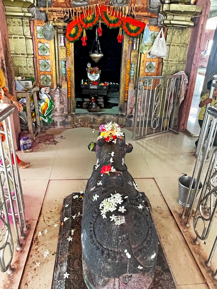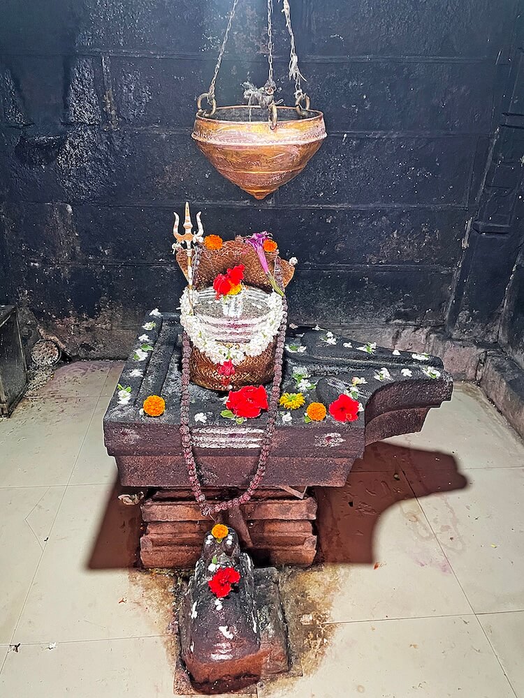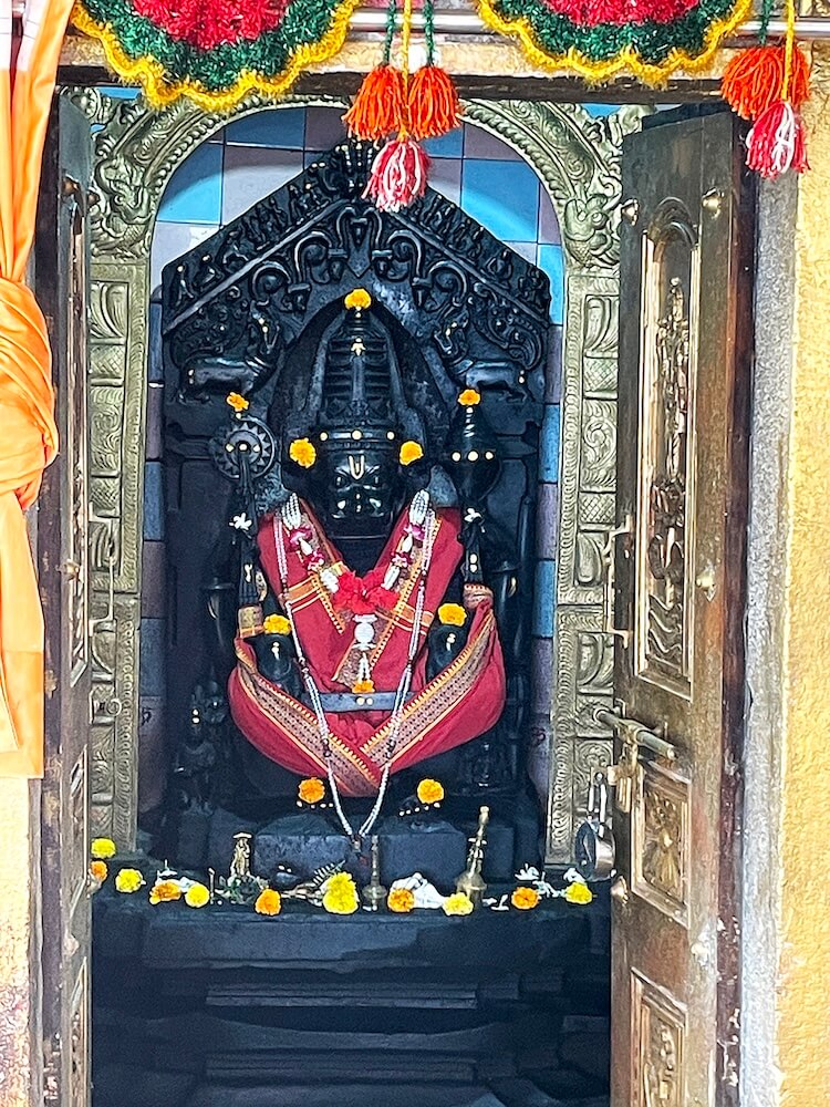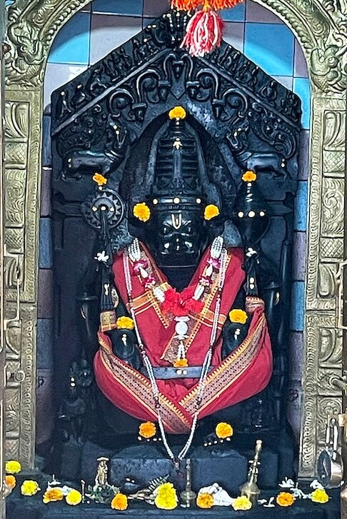 नृसिंह गर्भगृहात एका कमी उंचीच्या वज्रपीठावर नृसिंह मूर्ती आहे. असे सांगितले जाते की हे वज्रपीठ मूळ मंदिरातील असून ते मूर्ती सापडली त्याच ठिकाणी मिळाले होते. त्यामुळे ते मूर्तीइतकेच प्राचीन असल्याचे मानले जाते. नृसिंह मूर्तीच्या चेहऱ्यावर सौम्य भाव आहेत. देव योगमुद्रेत योगासनात बसले आहेत. चतुर्भुज देवाच्या वरील दोन हातांत शंख-चक्र आहेत व खालील दोन हात गुडघ्यांवर ठेवले आहेत. एका पायावर दुसरा पाय ठेवून देव उत्कटासनात बसले आहेत. देवाच्या शेजारी गदा आहे. मूर्तीवर वस्त्रे व अलंकार कोरलेले आहेत. देवाच्या गळ्यात माळा, दंडात दंडपट्टा, कंबरेला मेखला व डोक्यावर मुकुट आहे. मूर्तीचे दात, जिव्हा, डोळे, आयाळ, हातापायाची बोटे व नखे अत्यंत सुस्पष्ट पद्धतीने घडवली असल्याने हे एखाद्या निष्णात शिल्पकारांचे काम असल्याचे दिसून येते. देवाच्या पायाकडे उजव्या बाजूला भक्त प्रल्हाद व डाव्या बाजूला माता कयाधू यांची शिल्पे आहेत. मूर्तीच्या मागील पाठशिळेवर वर मध्यभागी कीर्तिमुख आणि दोन्ही बाजूला मकर शिल्पे आहेत. पाठशिळेवरील तोरणात विष्णूचे दशावतार कोरलेले आहेत. त्यात मत्स्य, कच्छ, वराह, नृसिंह, वामन, परशुराम, राम, बलराम, बुद्ध व कलकी अशा शिल्पांचा समावेश आहे. मूर्तीच्या उजव्या बाजूला विष्णूचे वाहन गरुडाचे शिल्प आहे. गर्भगृहाच्या छतावर शिखर आहे. या गर्भगृहाच्या शेजारी असलेल्या गर्भगृहासमोर अखंड पाषाणातील नंदीची मूर्ती व गर्भगृहात मोठी शिवपिंडी आहे. या गर्भगृहाची रचना नृसिंह मूर्ती असलेल्या गर्भगृहासारखीच आहे.