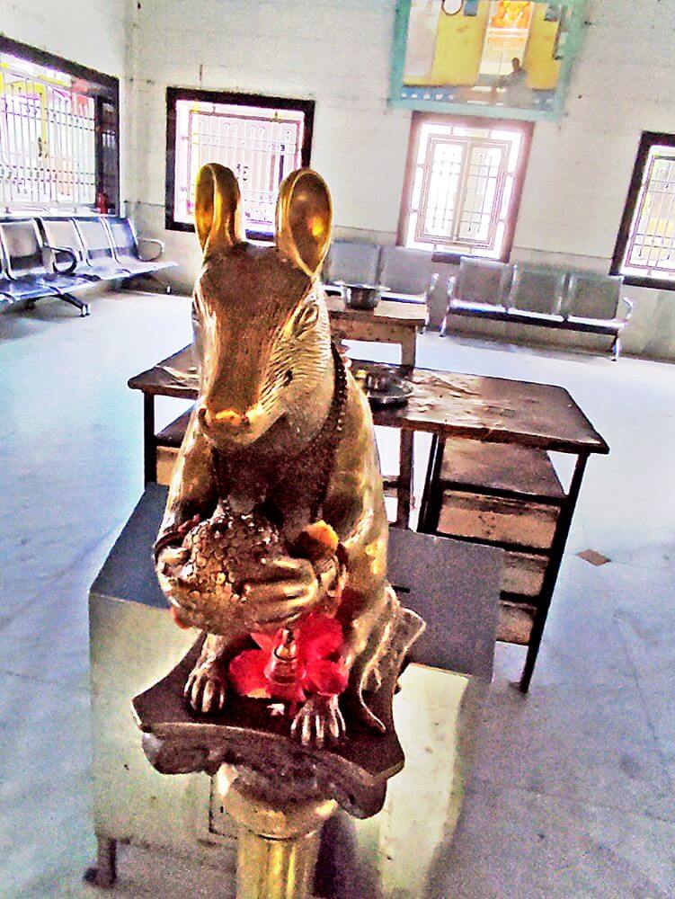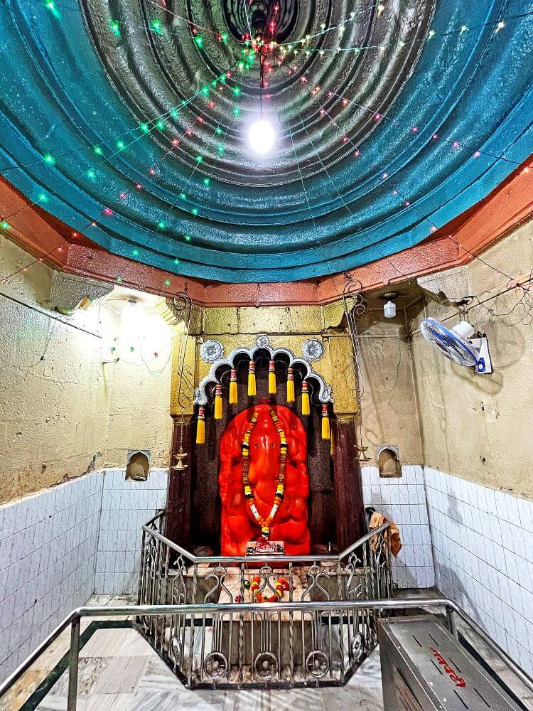 असलेली गणेशाची मूर्ती सहा फूट उंचीची व साडेतीन फूट रुंदीची भव्य व शेंदूरचर्चित आहे. म्हणूनच याला महागणपती असे नाव मिळाले आहे. ही मूर्ती तिळातिळाने वाढते, अशी भाविकांची श्रद्धा आहे. मूर्तीच्या आकाराहून येथील गर्भगृहाचा दरवाजा लहान असल्याने भाविकांची ही श्रद्धा आणखी दृढ झाली आहे. ही मूर्ती ४०० वर्षांहून जुनी असावी, असे सांगितले जाते. माघी गणेशोत्सव व संकष्ट चतुर्थीला या मूर्तीला सजवण्यात येते. त्यावर चांदीचा मुकुट चढविण्यात येतो.