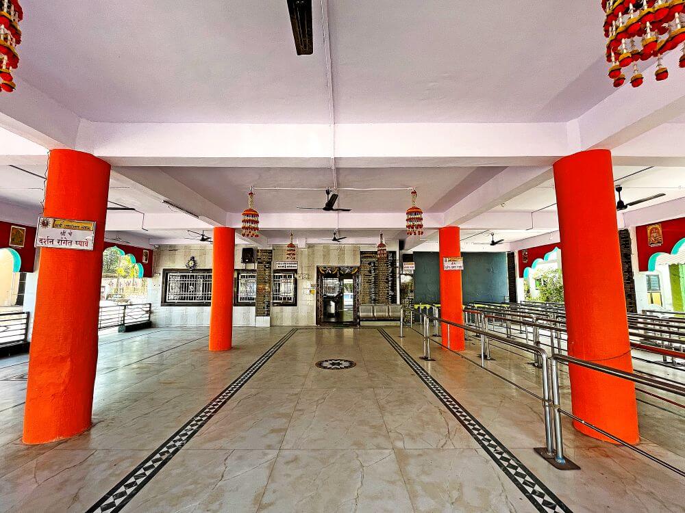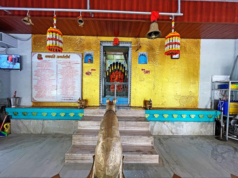 पूर्वाभिमुख मंदिराच्या गर्भगृहाचे प्रवेशद्वार आकाराने काहीसे लहान आहे. या प्रवेशद्वाराच्या ललाटबिंबावर गणेशमूर्ती आहे. गर्भगृहात एका वज्रपीठावर