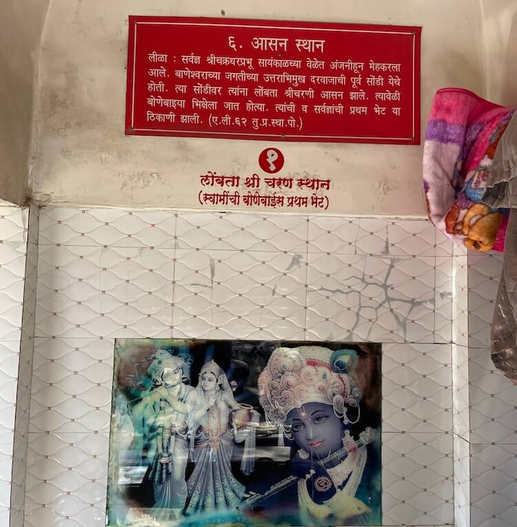 येथून काही पावलांवर ‘विशालरूपधारण स्थान’ आहे. येथेच चक्रधरस्वामींनी चोराला विशालरूप दाखवले होते. या स्थानापासून काही अंतरावरील ‘चोर नागविणे स्थान’ आहे. गाठोडे टाकून पळून जाताना चोराचे कापड येथे पडले होते. मंदिराच्या परिसरात एका खोलीच्या ठिकाणी पूर्वी बोणाबाईंची गुंफा होती. येथेच चक्रधरस्वामींनी त्यांना श्रीकृष्ण दर्शन घडवले होते, तसेच बोणाबाईंच्या पूजेचा स्वीकार केला होता. या खोलीतच ‘आरोगणा (भोजन) स्थान’ व ‘मादणे स्थान’ आहे. मंदिरापासून काही अंतरावर ‘लोंबता श्रीचरण स्थान’ आहे. येथेच चक्रधरस्वामी आणि बोणाबाईंची प्रथम भेट झाली होती.