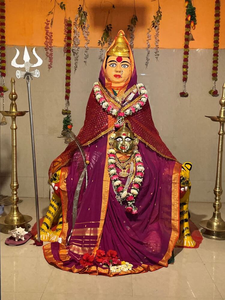 अवतारी आहे. ग्रामस्थांच्या विनंतीवरून तिने या मुलांना शुद्धीवर आणले. तेव्हापासून जगदंबेचा अवतार समजून लोक तिची पूजा करू लागले. काही काळाने तिने येथे जिवंत समाधी घेतली. त्याआधी तिने ग्रामस्थांना सांगितले होते की माझ्या समाधीवर शेंदराचे बाण निघाले की माझी या जागेवर स्थापना करा. त्याप्रमाणे ग्रामस्थांनी या जागेवर तिचे मंदिर उभारले. आपल्या गावात चक्क माय (देवी) प्रकटली, म्हणून हे गाव मायजी आणि त्यानंतर त्याचा अपभ्रंश होऊन माहिजी या नावाने ते ओळखले जाऊ लागले, असे सांगण्यात येते.