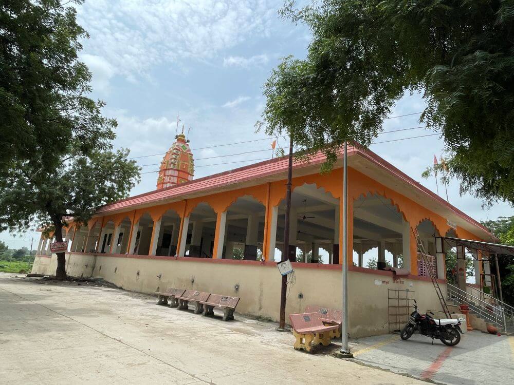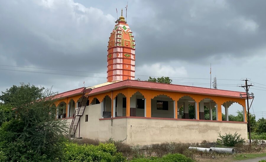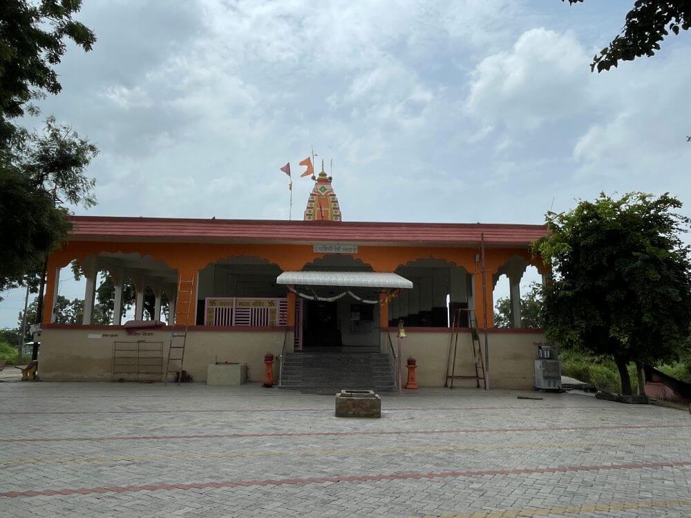 जळगाव पाचोरा मार्गावरील नांद्रा येथून जवळच माहिजी हे गाव आहे. गावाच्या वेशीनजीक विस्तिर्ण परिसरात हे भव्य मंदिर वसलेले आहे. मंदिराभोवती असलेल्या प्रांगणात पेव्हरब्लॉकची फरसबंदी आहे. मंदिरासमोर हवनकुंड आहे. उंच अधिष्ठानावर असलेल्या या मंदिराच्या सभामंडपात आठ पायऱ्या चढून प्रवेश होतो. या पायरी मार्गाच्या दोन्ही बाजुला तुलसीवृंदावन आहेत. सभामंडप, अंतराळ व प्रदक्षिणा मार्ग सोडून