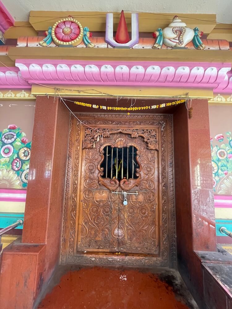 अंतराळात मध्यभागी असलेले गर्भगृह काहीसे उंचावर आहे. गर्भगृहाच्या प्रवेशद्वारास एक पायरी आहे. गर्भगृहाच्या लाकडी प्रवेशद्वाराच्या तिन्ही शाखांवर पानाफुलांची नाजूक नक्षी कोरलेली आहे. ललाटबिंबावर गणपती शिल्प व ललाटपट्टीवर पानाफुलांची नक्षी आहे. प्रवेशद्वारात वरील बाजूला गजतोरण आहे.