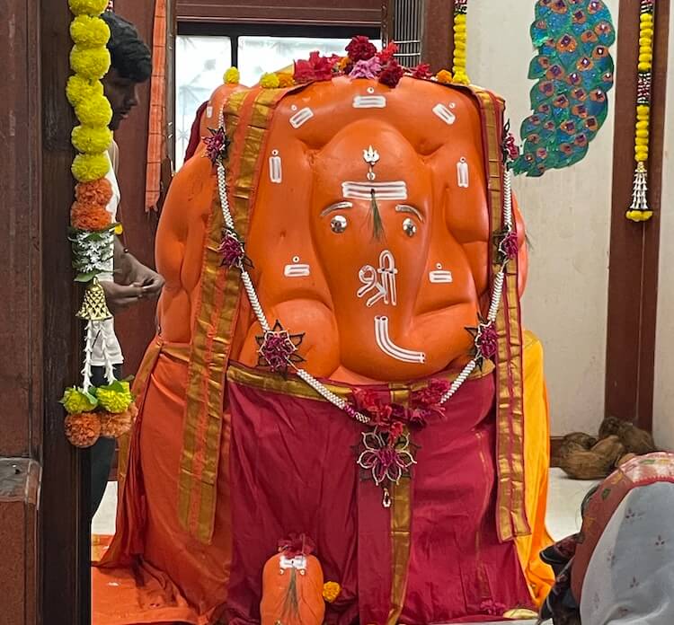 व दक्षिण अशी चतुर्मुखी मूर्ती (एकत्रित ४ रूपे), पाचवी मूर्ती याच मंदिरातील उत्सव मूर्ती समजली जाते, सहावे स्थान पूर्व सीमेवरील तिप्पटवाडी येथे, सातवे पश्चिम सीमेवर राधाबाई परिसरात, आठवे स्थान उत्तर सीमेवरील शिरापूर येथे व नववे स्थान दक्षिण सीमेवरील संगमेश्वर येथील लिंबा गणेश हे आहे.