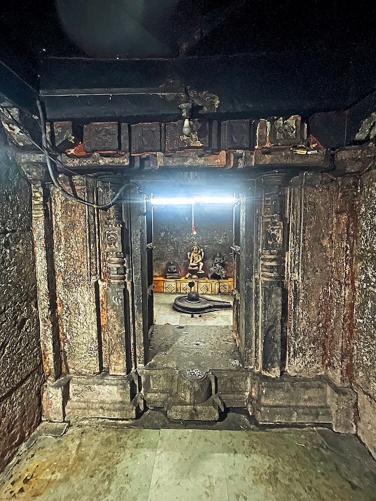 पुढे अंतराळाचे प्रवेशद्वार आहे. प्रवेशद्वाराच्या दोन्ही बाजूला चौकोनी नक्षीदार स्तंभ आहेत. स्तंभांच्या बाजूला देवकोष्ठके आहेत. उजव्या बाजूच्या देवकोष्ठकात गणपतीची मूर्ती व डावीकडे विठ्ठल-रखुमाई यांच्या मूर्ती आहेत. अंतराळाच्या पुढे गर्भगृहाचे प्रवेशद्वार आहे. प्रवेशद्वाराच्या द्वारशाखांवर पानफुलांची नक्षी आहे. ललाटबिंबावर गणपतीची मूर्ती व ललाटपट्टीवर पानफुलांची नक्षी आहे. नक्षीदार स्तंभशाखांवर सज्जा व मंडारकास चंद्रशीळा आहे. गर्भगृहात मधोमध जमिनीवर शिवपिंडी आहे. शिवपिंडीवर छत्र धरलेला पाचफणी पितळी नाग आहे. जलधार धरलेले अभिषेक पात्र छताला टांगलेले आहे. गर्भगृहात मागील भिंतीलगत वज्रपीठावर हातात शिवलिंग धरलेल्या मार्कंडेय ऋषींचे ध्यानस्थ मुद्रेतील शिल्प आहे. त्याच्या बाजूला बाल्यावस्थेतील मार्कंडेय ऋषींनी शिवपिंडीला मिठी मारलेली मूर्ती आहे. या मूर्तीत महादेवाने त्यांच्या मस्तकावर हात ठेवला आहे, असे दृश्य आहे. या मूर्तीच्या शेजारी रेड्यावर बसलेल्या यमाची मूर्ती आहे. मुखमंडपाच्या छतावर चौकोनी शिखर व त्यावर चार नक्षीदार स्तंभ आहेत. शिखराच्या दर्शनी भिंतीवर कमळफुलांची नक्षी व देवकोष्ठकात गणपतीची मूर्ती आहे. मंदिराच्या छतावर चहूबाजूंनी संरक्षक कठडा आहे. त्यातील दर्शनी बाजूच्या सहा देवकोष्ठकांत गणपती, महादेव, राम, कृष्ण आदी देवतांच्या मूर्ती आहेत.