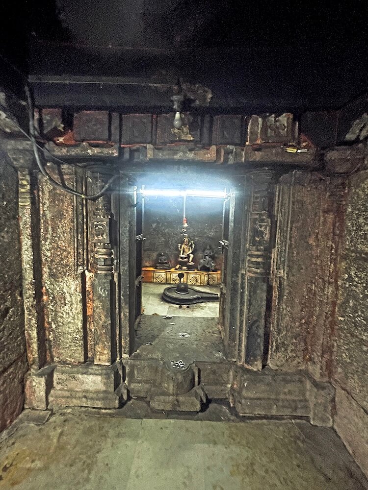 पुढे अंतराळाचे प्रवेशद्वार आहे. प्रवेशद्वाराच्या दोन्ही बाजूला चौकोनी नक्षीदार स्तंभ आहेत. स्तंभांच्या बाजूला देवकोष्ठके आहेत. उजव्या बाजूच्या देवकोष्ठकात गणपतीची मूर्ती व डावीकडे विठ्ठल-रखुमाई यांच्या मूर्ती आहेत. अंतराळाच्या पुढे गर्भगृहाचे प्रवेशद्वार आहे. प्रवेशद्वाराच्या द्वारशाखांवर पानफुलांची नक्षी आहे. ललाटबिंबावर गणपतीची मूर्ती व ललाटपट्टीवर पानफुलांची नक्षी आहे. नक्षीदार स्तंभशाखांवर सज्जा व मंडारकास चंद्रशीळा आहे. गर्भगृहात मधोमध जमिनीवर शिवपिंडी आहे. शिवपिंडीवर छत्र धरलेला पाचफणी पितळी नाग आहे. जलधार धरलेले अभिषेक पात्र छताला टांगलेले आहे. गर्भगृहात मागील भिंतीलगत वज्रपीठावर हातात शिवलिंग धरलेल्या मार्कंडेय ऋषींचे ध्यानस्थ मुद्रेतील शिल्प आहे. त्याच्या बाजूला बाल्यावस्थेतील मार्कंडेय ऋषींनी शिवपिंडीला मिठी मारलेली मूर्ती आहे. या मूर्तीत महादेवाने त्यांच्या मस्तकावर हात ठेवला आहे, असे दृश्य आहे. या मूर्तीच्या शेजारी रेड्यावर बसलेल्या यमाची मूर्ती आहे. मुखमंडपाच्या छतावर चौकोनी शिखर व त्यावर चार नक्षीदार स्तंभ आहेत. शिखराच्या दर्शनी भिंतीवर कमळफुलांची नक्षी व देवकोष्ठकात गणपतीची मूर्ती आहे. मंदिराच्या छतावर चहूबाजूंनी संरक्षक कठडा आहे. त्यातील दर्शनी बाजूच्या सहा देवकोष्ठकांत गणपती, महादेव, राम, कृष्ण आदी देवतांच्या मूर्ती आहेत.