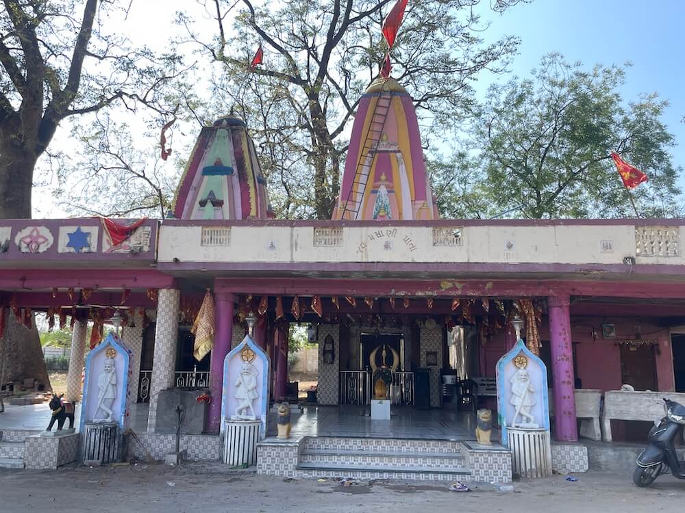 The ‘Chaitra Purnima’ (full moon of the month of Chaitra) is celebrated with a grand annual fair, drawing thousands who come to discharge their vows. Offerings of ‘Chunris’, traditional cosmetics, dry fruits and ‘Bhaji-Bhakri’ (vegetables and flatbread) are made, alongside silver goat figurines. During the nine nights of ‘Navratra’, special ‘Aartis’ and ‘Garba’ dances are organised, culminating in vibrant celebrations on ‘Sharad Purnima’ when the precincts are brilliantly illuminated. The temple also hosts special observances during ‘Shravan’, ‘Makar Sankranti’ and ‘Mahashivratra’, on which days locals traditionally bathe in the Vatrak before seeking the Goddess’s blessing. While Tuesdays, Fridays and both new and full moon days see a large influx of visitors, every Sunday the temple grounds take on the bustling atmosphere of a local fair. The temple remains open for devotees daily from 6 AM to 8 PM.