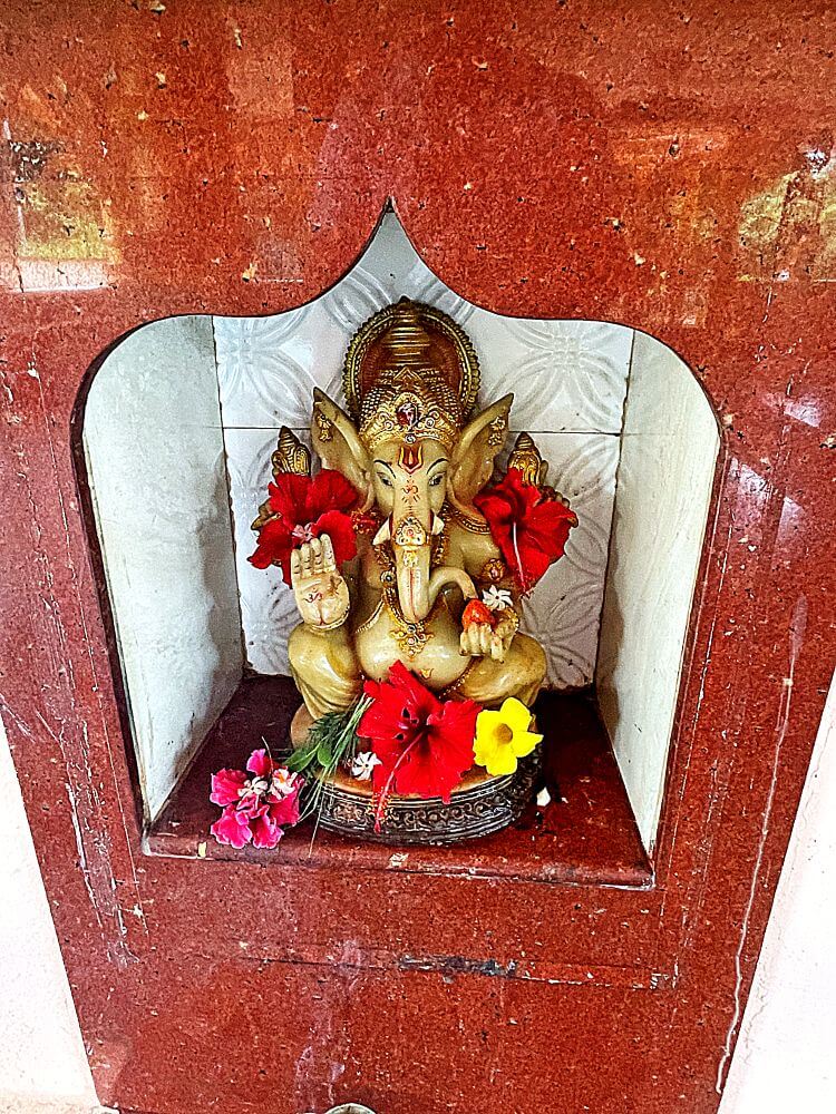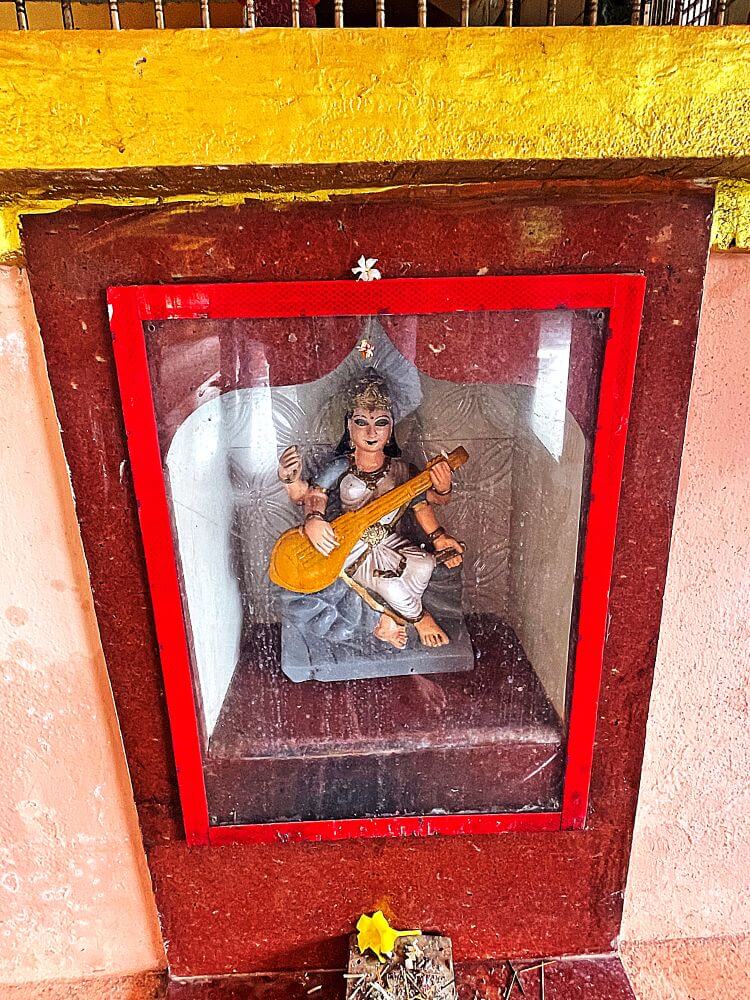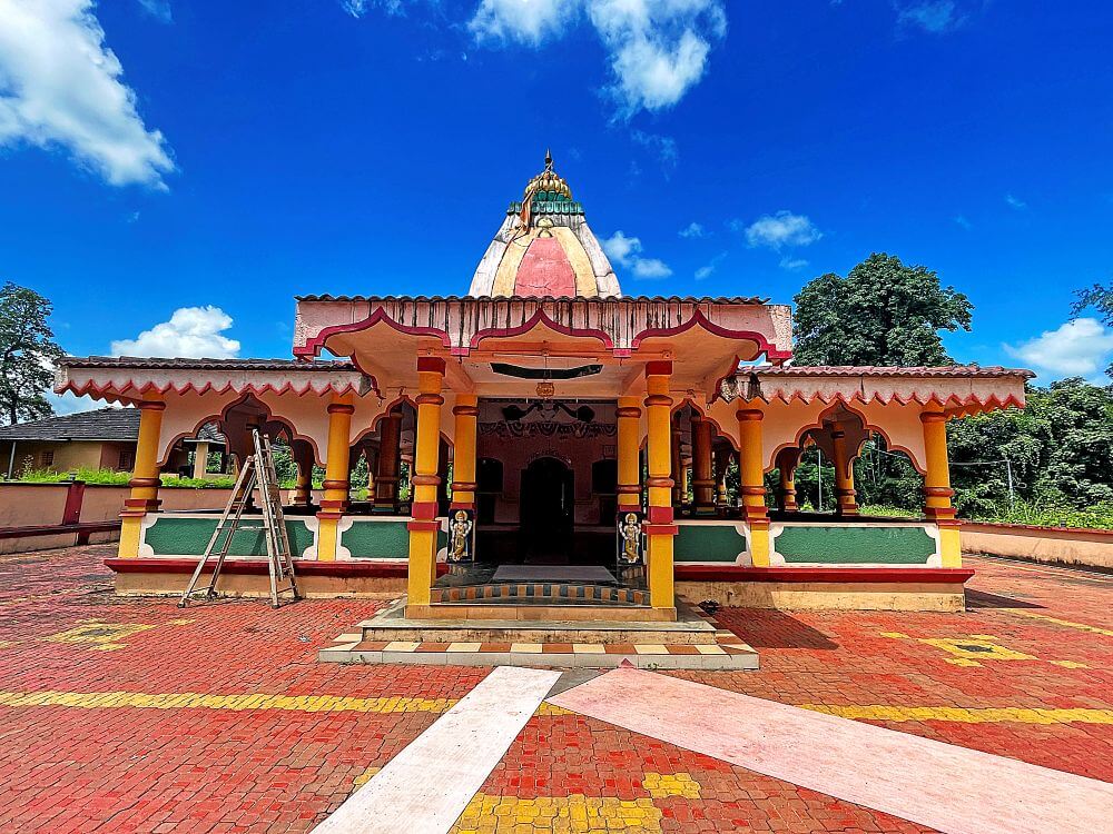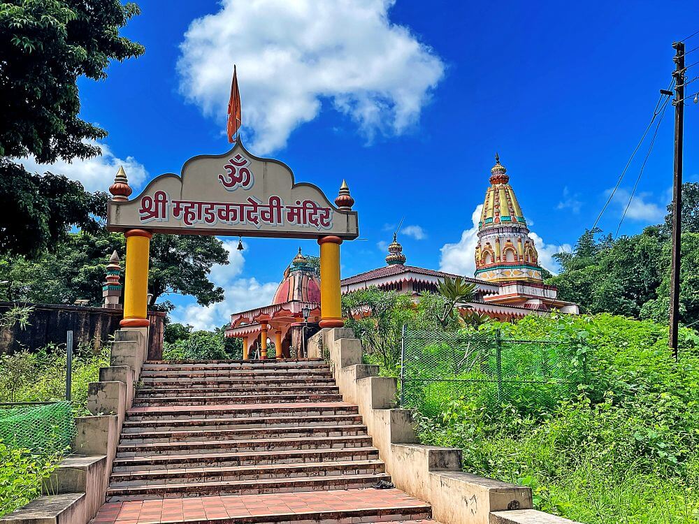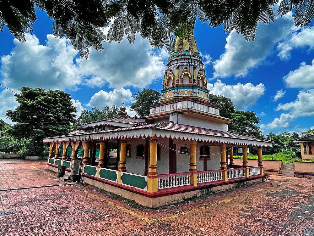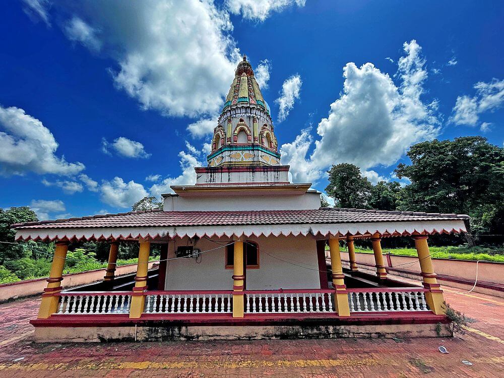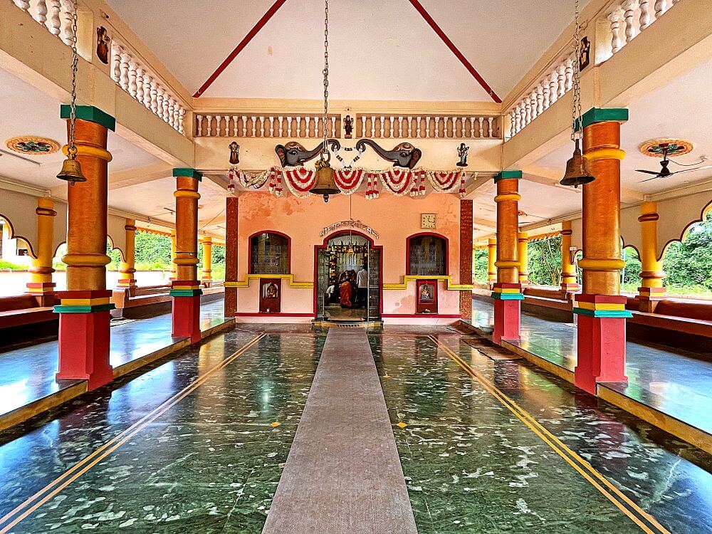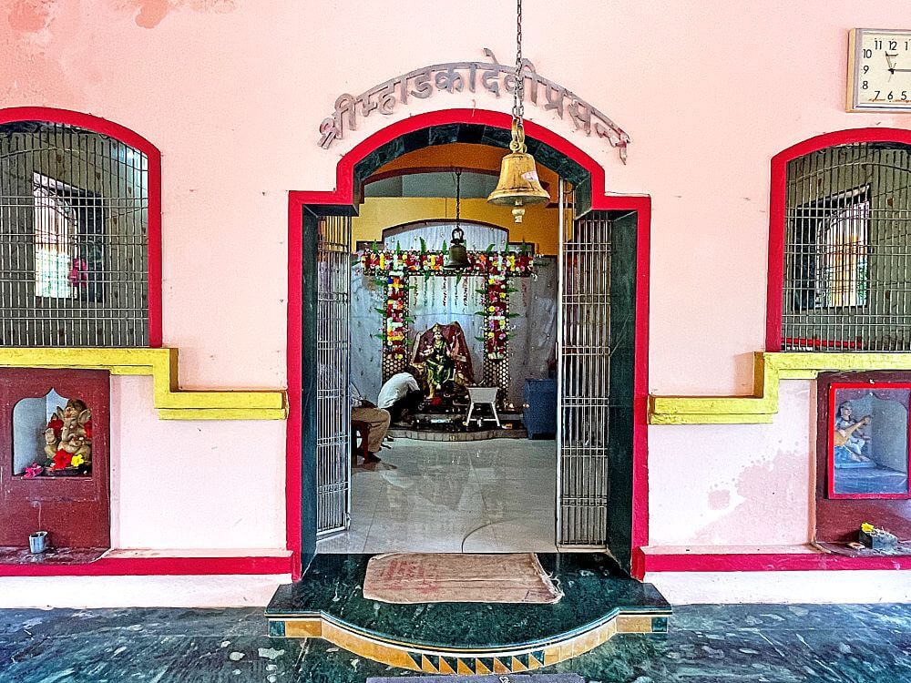 या कक्षासनांच्या वर असलेले खांब एकमेकांशी कमानीसदृश्य आकाराने जोडलेले आहेत. कोकणी स्थापत्यशैलीनुसार सभामंडपाचा मधला आयताकृती भाग हा बाजूच्या जमिनीपासून काही इंच खोलगट आहे. सभामंडपाच्या पुढील बाजूस प्रदक्षिणा मार्ग सोडून गर्भगृह आहे. गर्भगृहाच्या दर्शनी भिंतीवरील देवकोष्ठकांमध्ये गणपती व सरस्वती यांच्या मूर्ती आहेत. गर्भगृहाच्या मध्यभागी काळ्या पाषाणातील शिवपिंडी आहे. शिवपिंडीच्या मागील बाजूस एका कमी उंचीच्या वज्रपीठावर वाघावर आरूढ म्हाडका देवीची अष्टभुजाधारी मूर्ती आहे. सोनेरी मुकुट, कपाळावर कुंकू, नाकात नथ, कानात कर्णकुंडले, हातांमध्ये विविध अस्त्रे, हिरवी साडी नेसलेली व अंगभर दागिने ल्यालेली ही देवीची मूर्ती सुबक भासते. मंदिराच्या सभामंडपावर एक लहानसे शिखर व गर्भगृहावर मुख्य शिखर आहे.
