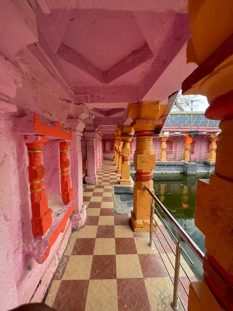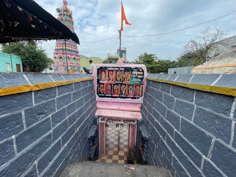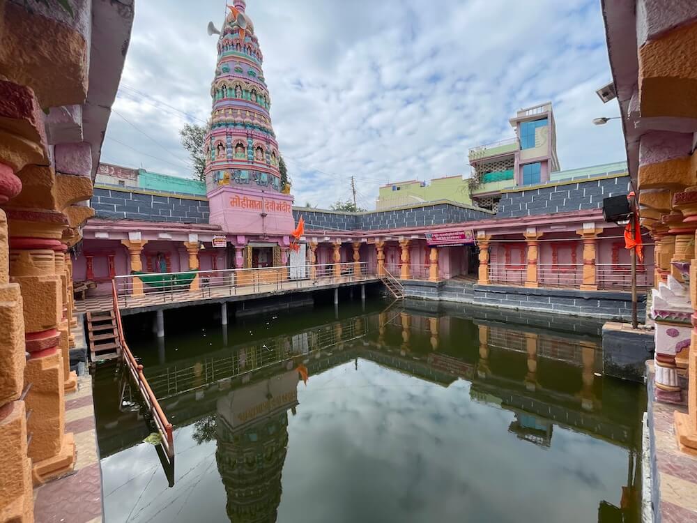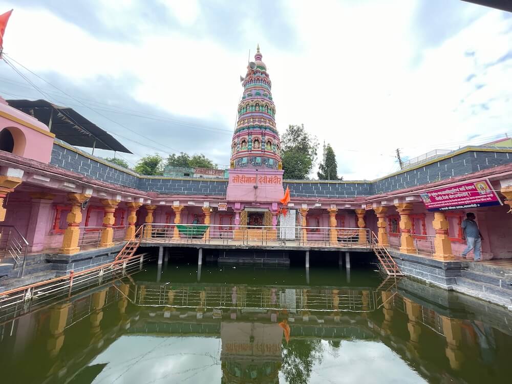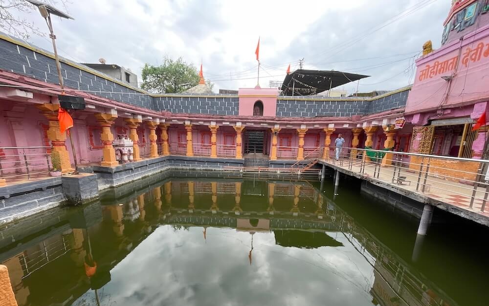 प्रवेशद्वारातून आत आल्यावर पुष्करणीच्या चारही बाजूंना ओसऱ्या असलेल्या जागेत प्रवेश होतो. या ओसऱ्यांमध्ये एकूण २८ नक्षीदार स्तंभ आहेत. हे सर्व स्तंभ चौकोनी स्तंभपादावर उभे आहेत. त्यांच्या स्तंभदंडात चौकोन, षट्कोन, अष्टकोन, वर्तुळ असे विविध भौमितिक आकार आहेत. या मार्गातून पुष्करणीस प्रदक्षिणा घातली जाते. ओसरीच्या मागील चारही बाजूंच्या भिंतीत एकूण २४ देवकोष्ठके आहेत. सर्व देवकोष्ठकांत स्तंभनक्षी आहे. सद्यस्थितीत ही देवकोष्ठके रिकामी असली, तरी एकेकाळी यात विविध देवतांच्या मूर्ती होत्या, असे सांगितले जाते. ओसरीच्या पश्चिम दिशेला गर्भगृह आहे. गर्भगृहाच्या द्वारशाखेवर चौकट नक्षी व स्तंभनक्षी आहे. गर्भगृहात वज्रपीठावर मोहिमातेची संगमरवरी द्विभुज आणि उभ्या स्थितीतील मूर्ती आहे. मूर्तीच्या एका हातात पद्मफूल व दुसरा हात आशीर्वाद मुद्रेत आहे. वस्त्रे व अलंकार ल्यालेल्या या देवीच्या डोक्यावर मुकुट आहे. पूर्वी गर्भगृहासमोर देवीचा स्वयंभू तांदळा होता, परंतु मंदिराचा जीर्णोद्धार करण्यात आल्यानंतर देवीची संगमरवरी मूर्ती बसवण्यात आली आहे.
