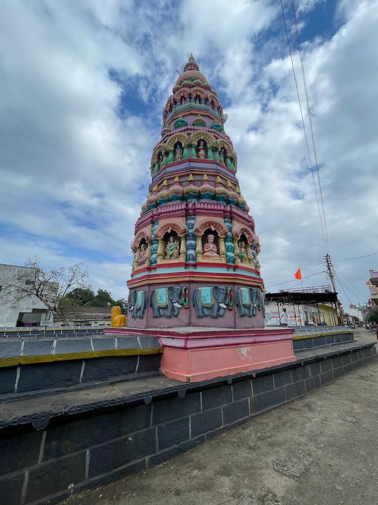 गर्भगृहाच्या छतावर सुमारे सात थरांचे गोलाकार शिखर आहे. शिखराच्या चारही कोपऱ्यांवर सिंहशिल्पे आहेत. शिखराच्या खालील पहिल्या थरात गजथर आहेत. त्यातील गजराज वेगवेगळ्या भावमुद्रेत दिसतात. शिखराच्या दुसऱ्या थरात बारा देवकोष्ठके आहेत आणि त्यात विविध देवतांच्या मूर्ती आहेत. शिखराच्या तिसऱ्या थरात २४ आमलक व त्यावर कळस आहेत. शिखराच्या चौथ्या व पाचव्या थरात प्रत्येकी बारा देवकोष्ठके व त्यात विविध देवतांच्या मूर्ती आहेत. पाचव्या थरातील देवकोष्ठकांच्या छतांवर शिखर आहे आणि शिखरांच्या शीर्षभागी आमलक आहेत. मुख्य शिखराच्या शीर्षभागी दोन आमलक व कळस आहे.