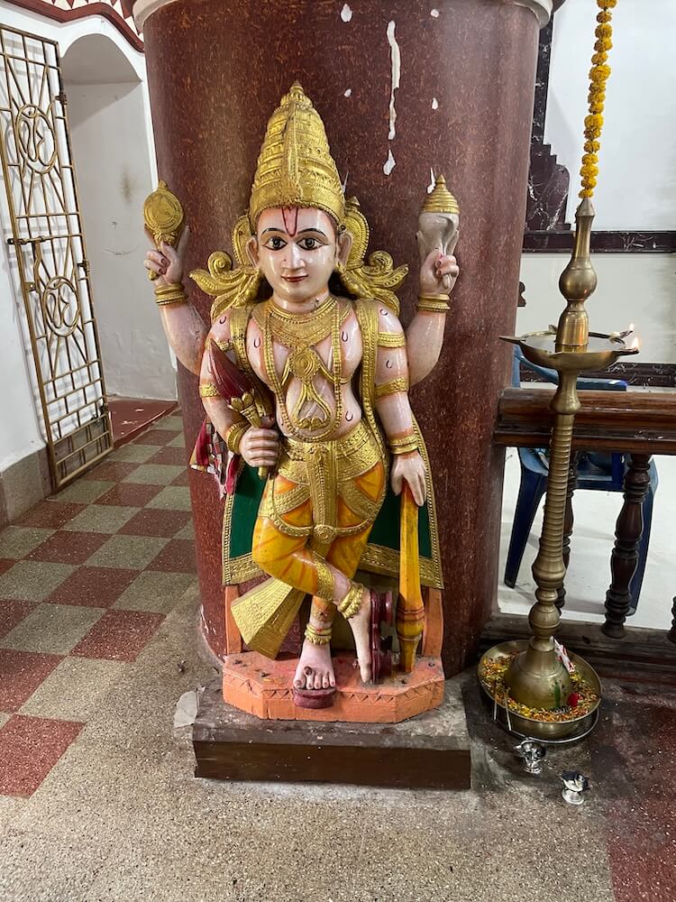 या मंदिराचे गर्भगृहही मंदिराच्या भव्यतेस शोभेल असे प्रशस्त आहे. त्यात डाव्या आणि उजव्या भिंतींपासून काही अंतर सोडून भव्य गोलाकार स्तंभ आहेत.