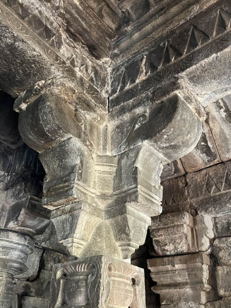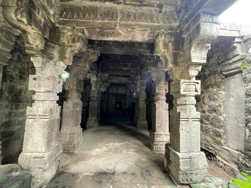 पूर्वाभिमुख असलेल्या मुधाई मंदिराचा पाया ताऱ्याच्या आकाराचा आहे. मुखमंडप, सभामंडप, अंतराळ व गर्भगृह अशी या मंदिराची रचना आहे. अर्धमंडपाच्या समोरील दोन स्तंभांजवळ एक गणेशाची व दुसरी शेंदूरचर्चित पाषाणमूर्ती आहेत. प्रवेशद्वारानजीक सूर्यप्रतिमा कोरलेले स्तंभ आहेत. मुखमंडपात असलेल्या चार स्तंभांवर वैशिष्ट्यपूर्ण कोरीवकाम आहे. या स्तंभांच्या वरील बाजूला दगडी कुंभांची अनोखी रचना आहे. हे दगडी कुंभ कोरताना कुंभाच्या चारही बाजूने दगडी नक्षीकाम व आतील बाजूला कुंभाची रचना केलेली आहे. दुर्मिळ समजले जाणारे अशा पद्धतीचे कोरीव काम वेरूळ येथील जगप्रसिद्ध कैलास लेण्यांतील सभामंडपातील खांबांवरही पाहायला मिळते. या मुखमंडपातून मंदिराच्या सभामंडपात प्रवेश होतो. मुखमंडपाप्रमाणेच सभामंडपात व अंतराळातही नक्षीदार दगडी स्तंभ आहेत. अशा एकूण २४ स्तंभांवर मंदिराचा भार तोललेला आहे. सभामंडप व अंतराळाच्या वितानावर सुंदर नक्षीकाम केलेले आहे. येथील सभामंडप व अंतराळ बंदिस्त स्वरूपाचे आहेत.