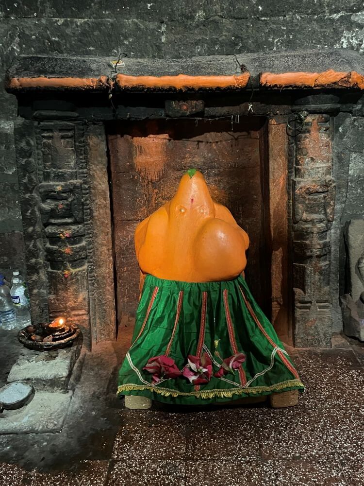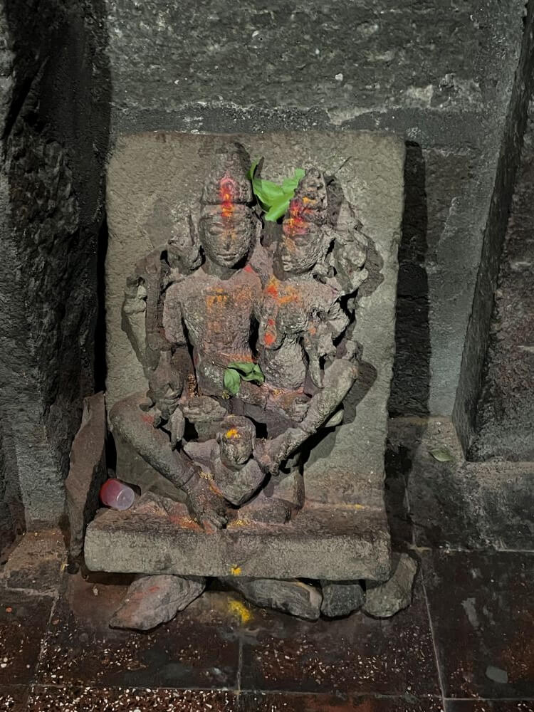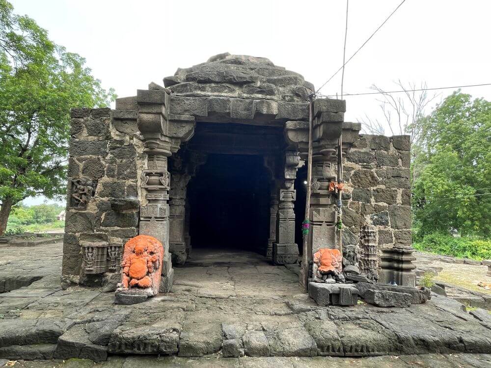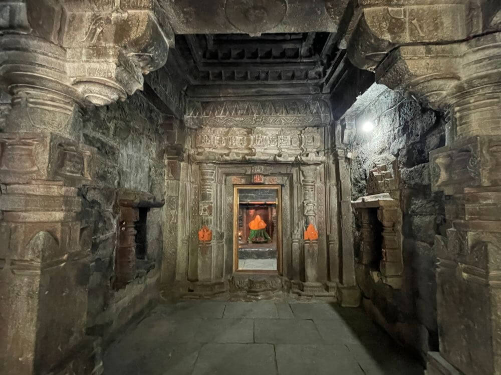 गर्भगृहाच्या प्रवेशद्वाराला नक्षीदार स्तंभशाखा आहेत. याशिवाय दाराची चौकट ही पाच शाखांनी बनलेली आहे. या द्वारशाखांवर सुंदर नक्षीकाम आहे. ललाटबिंबस्थानी गणेशप्रतिमा आहे व त्याच्या वरील द्वारचौकटीवर सूर्यप्रतिमा आहे. त्यावरील उत्तरांग भागात नवग्रहांचे अंकन आहे. गर्भगृहात एका पाषाणी वज्रपिठावर मुधाई देवीची तांदळा स्वरूपातील मूर्ती आहे. याशिवाय येथे उमामहेश्वराची एक प्राचीन मूर्ती आहे. त्यात शंकराच्या वामांकावर पार्वती बसल्याचे दाखवण्यात आले आहे. मंदिराच्या पश्चिमेकडील म्हणजेच मागच्या भिंतीवर सूर्यदेव, उत्तरेकडील भिंतीवर चामुंडा देवी आणि दक्षिणेकडील भिंतीवरील देवकोष्टकात गणपतीची उभी मूर्ती आहे. चामुंडा देवीच्या एका हातामध्ये खटवांग आणि वरच्या हातामध्ये नाग पकडलेला दिसतो. येथील सूर्यदेवाची मूर्ती वैशिष्ट्यपूर्ण आहे. त्याच्या शेजारी उषा आणि प्रत्युषा आहेत. खालच्या बाजूस सात अश्वांचा मुखाकडील भाग कोरलेला आहे. मंदिराचा कळस नष्ट झाल्याने त्यावर सिमेंट–काँक्रीटचा स्लॅब टाकण्यात आलेला आहे.