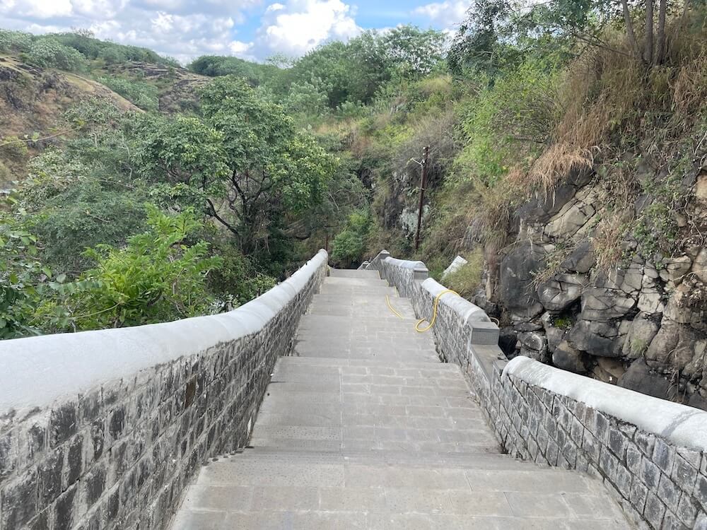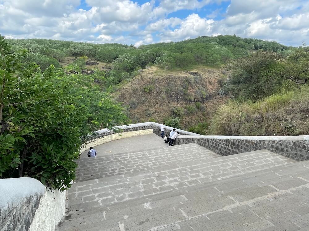 अंबाजोगाई शहरातून मुकुंदराज समाधीकडे जाणाऱ्या रस्त्यावर स्वागतकमान आहे. समाधीस्थळ डोंगरकड्याला लागून आहे. येथून डोंगरमाथ्यावरील वाहनतळापर्यंत रस्ता आहे. येथून खाली समाधीपर्यंत जाण्यासाठी पायऱ्या आहेत. पायरीमार्गाच्या प्रारंभी दुसरी स्वागतकमान आहे. स्तंभपादांवर तीन चौकोनी स्तंभ व त्यावर सज्जा असे स्वागतकमानीचे स्वरूप आहे. हे स्तंभ एकमेकांना महिरपी कमानीने जोडलेले आहेत. येथून १३० पायऱ्या उतरून समाधी मंदिराच्या प्रांगणात पोहोचता येते. पायरीमार्गाच्या एका बाजूला उंच डोंगरकडा व दुसऱ्या बाजूला सुरक्षा कठडा आहे. पायऱ्यांच्या बाजूला प्रांगणात समाधी मंदिर संस्थानचे कार्यालय आहे.