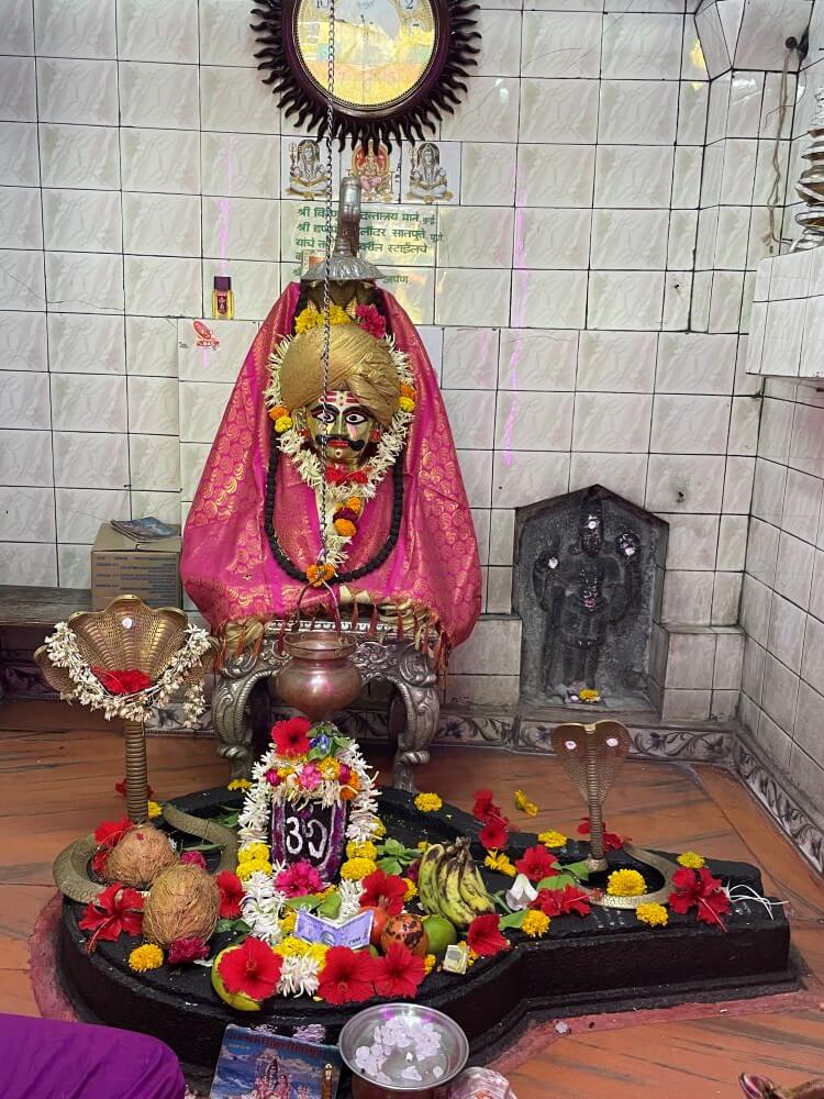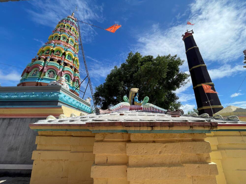 गर्भगृहाच्या छतावर चारही कोपऱ्यांत चार वैशिष्ट्यपूर्ण नंदीमुखे आहेत. शिखरावरील लहान लहान देवकोष्टकांत देवीदेवतांसह संतमहंतांच्याही मूर्ती आहेत. या शिखरावर दोन आमलक आहेत. त्यापैकी खालचा आमलक कमलपर्ण तर वरील आमलक कमळकळीच्या आकाराचा आहे. शिखरावर शीर्षस्थानी कळस आहे. मंदिराशेजारी असलेले दत्तमंदिरही प्राचीन आहे. या मंदिराच्या आवारात काही पुरातन शिल्पे असलेल्या शिळा आहेत. याशिवाय येथे पालखी आणि रथ आहे. उत्सवांच्या वेळी त्यांचा वापर केला जातो. या प्रांगणात सासू–सुनेच्या विहीरी या नावाने ओळखल्या जाणाऱ्या दोन विहिरी आहेत. त्यापैकी एका विहिरीचे पाणी गोड व दुसरीचे खारट आहे. या दोन्ही विहिरींचा विस्तार मोठा आहे. पुष्करणींसारखी रचना असलेल्या या विहिरींत उतरण्यासाठी पायऱ्या आहेत. असे सांगितले जाते की स्नान केल्यानंतर या विहिरीतून मंदिरात येण्यासाठी एक भुयारी मार्ग होता.