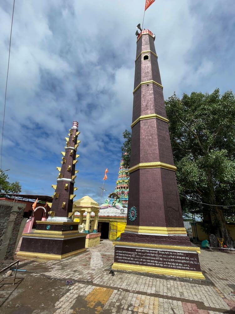 असे सांगितले जाते की नागनाथ महाराजांचे भ्रमण सुरू असताना ते या परिसरात आले होते. हे रम्य स्थान पाहून त्यांनी काही काळ येथे विश्रांती घेतली होती. त्यांच्या वास्तव्याने पावन झालेल्या या ठिकाणी मग मंदिर उभारण्यात आले. मंदिराच्या भोवती आवारभिंत आहे. त्यातील प्रवेशद्वारातून मंदिराच्या प्रांगणात प्रवेश होतो. प्रांगणात मंदिरासमोर दोन दीपमाळा आहेत. दोन्ही दीपमाळा दगडी बांधकामाच्या व प्राचीन आहेत. या दीपमाळांच्या आतून शिखरावर जाण्यासाठीचा गोलाकार पायरी मार्ग आहे.