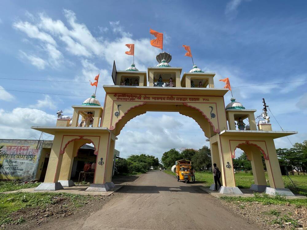 चहुबाजुंनी उंच तटभिंती असलेल्या हेमाडपंती बांधणीच्या या मंदिराला तीन प्रवेशद्वारे आहेत. यातील पूर्वेकडील मुख्य प्रवेशद्वाराला ‘नागेशभक्त दिल्ली दरबार’ असे नाव आहे.