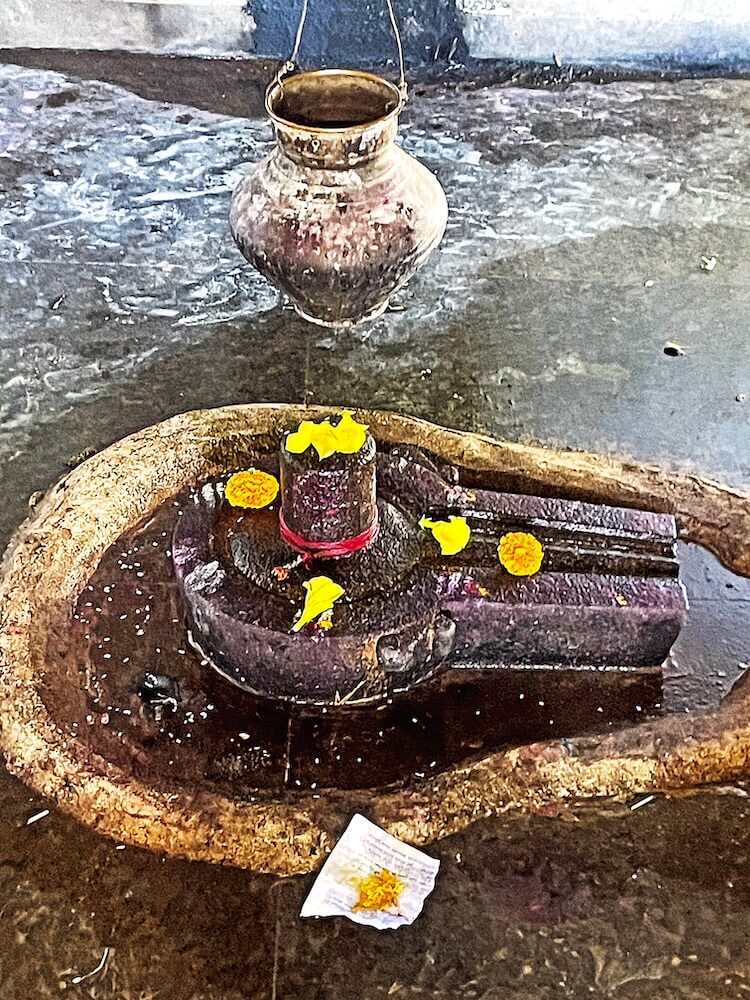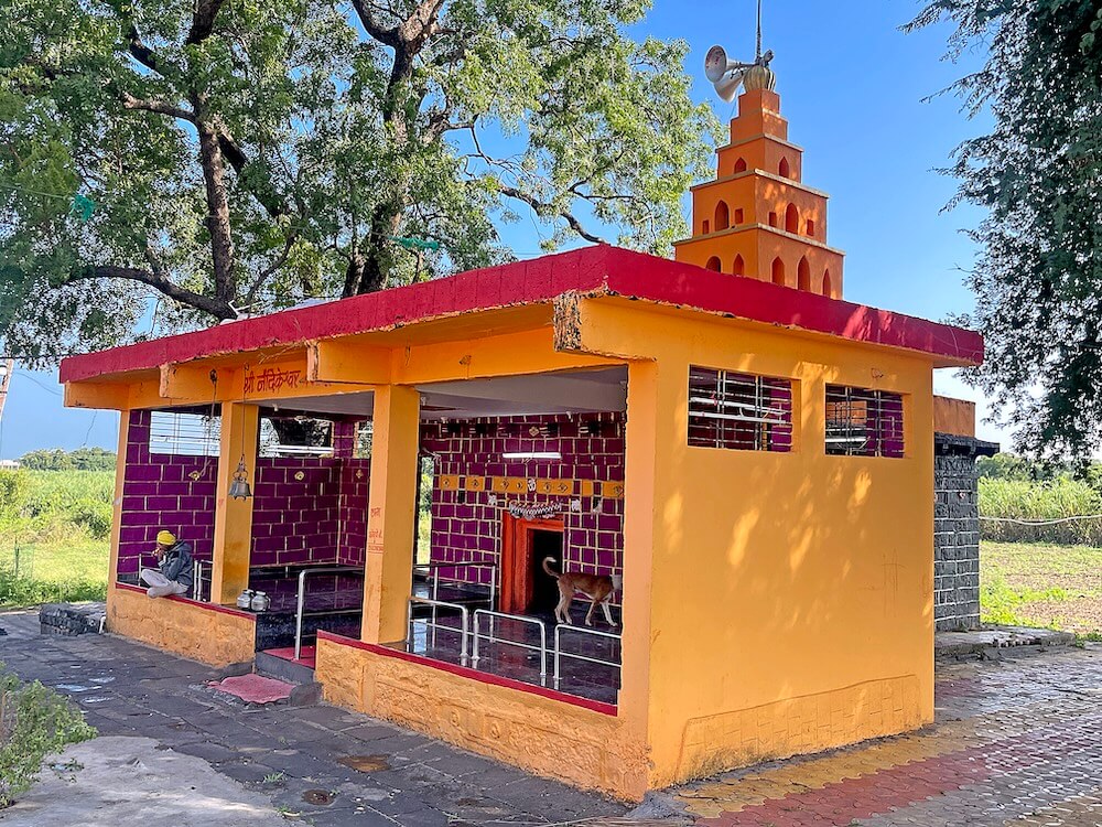 मूर्तीच्या चारही बाजूस चौकोनी नक्षीदार स्तंभ आहेत. एकमेकांना महिरपी कमानीने जोडलेल्या या स्तंभांनी नंदी मूर्तीवर एक मखर तयार झाला आहे. मूर्तीवर सतत अभिषेक धारा धरणारे पितळी अभिषेकपात्र छताला टांगलेले आहे. गर्भगृहातील देवकोष्ठकात शिवपिंडी व सप्तमातृकापट आहे. गर्भगृहाच्या भिंतीत दीपकोष्ठके आहेत. गर्भगृहाचे वितान षटकोनी असून ते शिखरापर्यंत पोकळ आहे. शिखरावरील खिडक्यांमुळे गर्भगृहात हवा व उजेड येण्याची सोय आहे. मंदिराच्या छतावर चहूबाजूने सुरक्षा कठडा आहे. गर्भगृहाच्या छतावर पाच थरांचे पिरॅमिड आकाराचे गोपूर पद्धतीचे शिखर आहे. शिखरात चारही बाजूला खिडक्या आहेत. शिखराच्या शीर्षभागी आमलक व त्यावर कळस आहे. मंदिरासमोर सांस्कृतिक व सामाजिक कार्यासाठी सभागृह आहे.