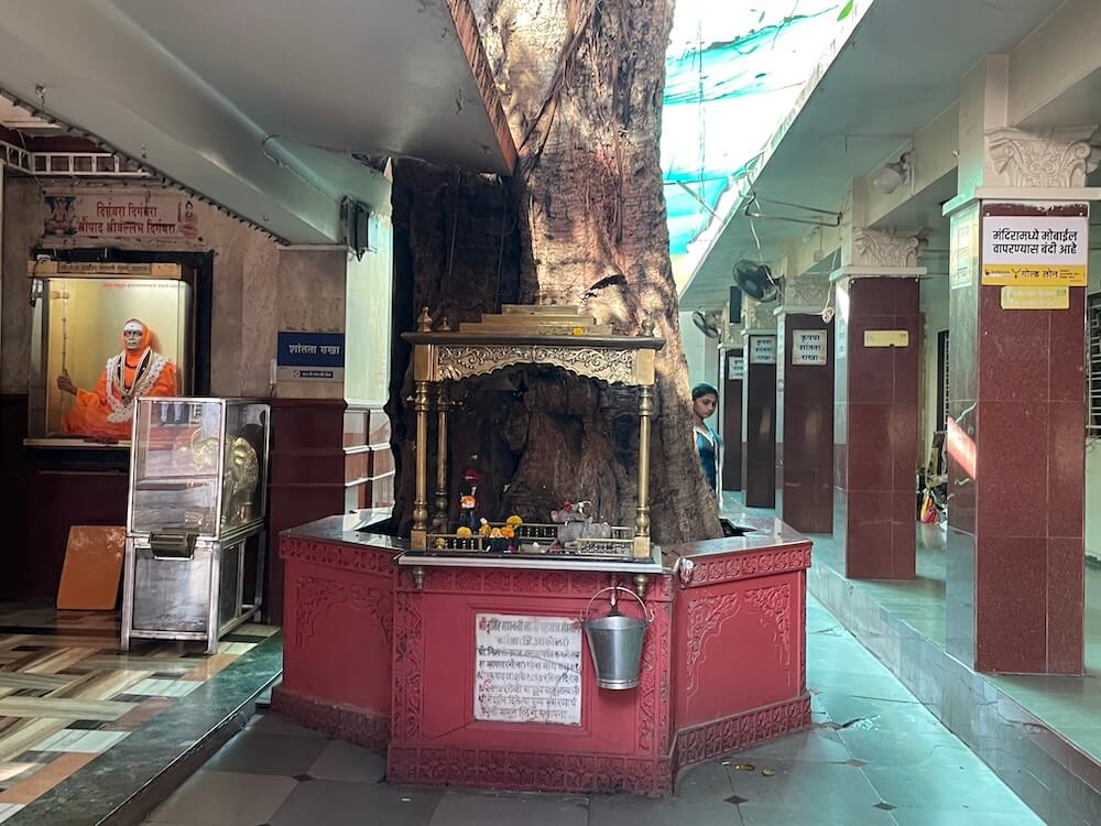 या वटवृक्षाच्या पारावर शिवपिंडी व नंदीची मूर्ती आहे. सभामंडपात अंतराळाच्या दर्शनी भिंतींसमोर दोन्हीबाजूला काचेच्या पेट्यांमध्ये चांदीचे गजराज आहेत. सभामंडपातून पाच पायऱ्या चढून काहीशा उंचीवर असलेल्या अंतराळात प्रवेश होतो. अंतराळाच्या प्रवेशद्वाराच्या दोन्हीकडे असलेल्या देवकोष्टकांत वासुदेवानंद सरस्वती स्वामी व ब्रह्मानंद सरस्वती स्वामी यांच्या भगवी वस्त्रे परिधान केलेल्या सुंदर मूर्ती आहेत.