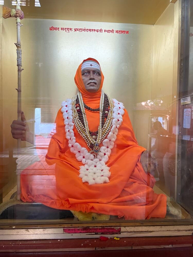 या मंदिरात नृसिंह सरस्वती स्वामींची मूर्ती स्थापन करायची होती. परंतु गुरूचरित्रात त्यांच्याबद्दल असलेल्या वर्णनाव्यतिरिक्त दुसरी कोणतीही माहिती उपलब्ध नव्हती. त्यावेळी ब्रह्मानंद सरस्वती स्वामींनी मुंबईतील स्कूल ऑफ आर्टचे मुख्याध्यापक व आपले शिष्य श्री. धुरंदर व तेथील प्राचार्य सालोमन यांना स्वामींचे चित्र काढण्याची जबाबदारी दिली. असे सांगितले जाते की या दोघांनी काढलेली आपापली चित्रे जेव्हा त्यांनी ब्रह्मानंद स्वामींकडे सुपूर्द केली तेव्हा ती तंतोतंत सारखीच होती. या चित्रांवरून जयपूर येथून शुभ्र संगरमरवरी मूर्ती बनविण्यात आली आणि १ एप्रिल १९३४ या दिवशी या मूर्तीची येथे प्रतिष्ठापना करण्यात आली. यासोबतच येथे श्रीदत्त, चिंतामणी गणपती, काशीविश्वेश्वर आणि पादुकांची स्थापना करण्यात आली.