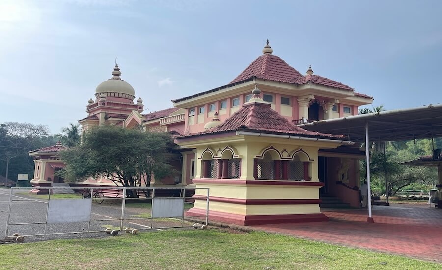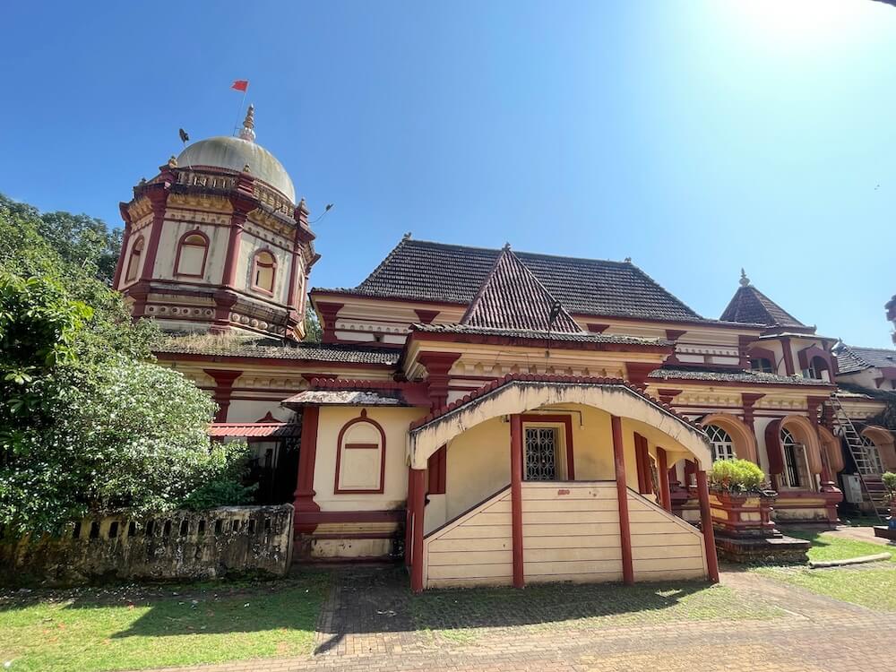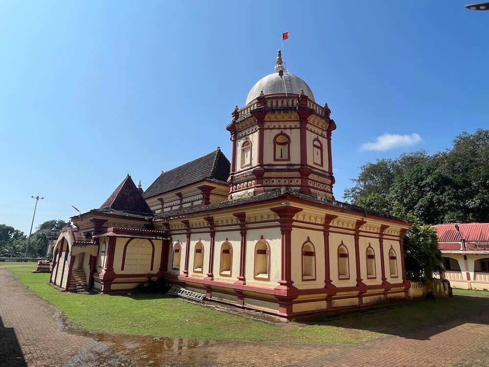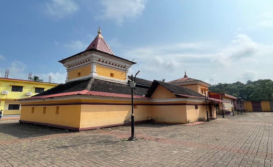 सभामंडप, मुख्य सभामंडप, अंतराळ व गर्भगृह अशी मंदिराची संरचना आहे. मंदिरासमोर पत्र्याचे छत असलेले रांगमंडप आहे. अर्धखुल्या स्वरूपाच्या सभामंडपात भाविकांना बसण्यासाठी कक्षासने आहेत. सभामंडपात प्रत्येकी सात गोलाकार स्तंभांच्या चार रांगा आहेत. बाह्यबाजूचे स्तंभ कक्षासनात आहेत. सर्व स्तंभ चौकोनी स्तंभपादावर उभे आहेत. या स्तंभांवर वरच्या मजल्याचा सज्जा आहे. मधल्या रांगांतील स्तंभांच्या मध्यभागी असलेली जमीन काही इंच खोलगट असून हे कोकणी स्थापत्यशैलीचे वैशिष्ट्य आहे. स्तंभांवर कावी शैलीतील चित्रनक्षी रंगविलेली आहे. पुढे सुमारे तीन फूट उंच बंदिस्त स्वरूपाच्या मुख्य सभामंडपाचे प्रवेशद्वार आहे. प्रवेशद्वारासमोर चार पायऱ्या आहेत. प्रवेशद्वाराच्या दोन्ही बाजूला असलेल्या देवकोष्टकांत द्वारपाल शिल्पे आहेत. मुख्य सभामंडपाच्या द्वारशाखांवर पानाफुलांच्या नक्षी आहेत. अंतराळाचे प्रवेशद्वार मुख्य सभामंडपापेक्षा सुमारे एक फूट उंच आहे. प्रवेशद्वाराच्या दोन्ही बाजूला द्वारपाल शिल्पे आहेत.