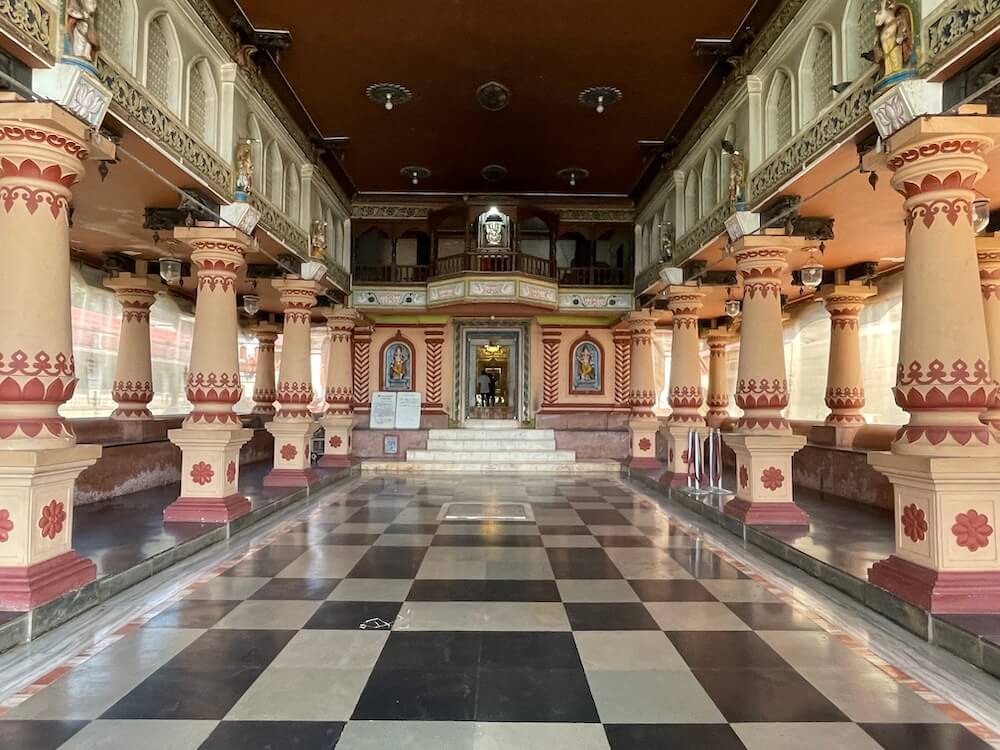 विविध वस्त्रे व अलंकार ल्यालेल्या या देवीच्या डोक्यावर मुकुट आहे आणि चेहऱ्यावर सोन्याचा मुखवटा आहे. देवीचा वाहन असलेल्या सिंहाने महिषासुरावर हल्ला केलेला आहे.