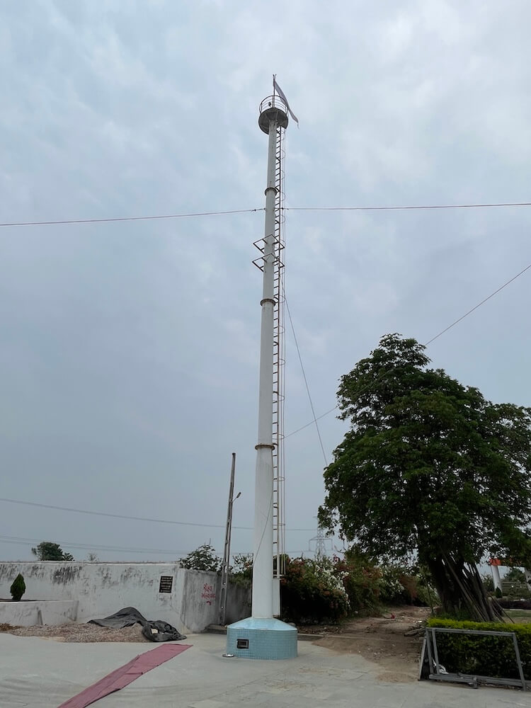 To the right of the samadhi temple, at a short distance, lies the Nishkalanki Narayan Jyoti Mandir, dedicated to the central deity of the Satpanth tradition. It is believed that Nishkalanki Narayan’s original name was Murtaza Ali, the son-in-law of Prophet Muhammad, but within the Satpanth, he is venerated in a Hindu form. Built on a high circular platform, the temple features a dome shaped like a pyramid topped with the sacred symbol of Om. Eleven steps lead up to the sabhamandap, where a platform holds Nishkalanki Narayan’s symbolic gadi (seat), with a sword and a brass Om affixed. His padukas rest before it on a smaller platform. To the left stands the marble Deepstambh, where the Adishakti Jyot burns continuously. Behind the seat, images of Lord Vishnu and the trinity of Brahma-Vishnu-Mahesh are placed.