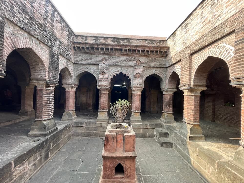 या मंदिरासमोरील ओवरीवजा मंडप लक्षवेधी आहे. विटांचे बांधकाम असलेल्या मंडपात अनेक कमानी असून येथे काही देवकोष्ठकेही आहेत. त्यापैकी एका देवकोष्ठकात हनुमानाची प्राचीन मूर्ती आहे. प्रांगणातील तुळशीवृंदावनाच्या चारही बाजूंना हनुमानाच्या मूर्ती कोरलेल्या आहेत. नजीकच असलेल्या गणेशाच्या मूर्तीजवळ एक गुप्तमार्ग आहे.