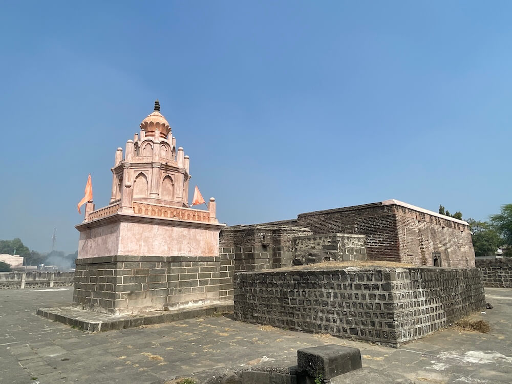 शहरातील रंगमहाल रस्त्यावरून पुढे आल्यावर या मंदिराच्या तटबंदीत असलेल्या प्रवेशद्वारातून मंदिराच्या प्रांगणात प्रवेश होतो. या मंदिराला लागूनच एक मोठी बारव आहे आणि या बारवेच्या काठावर तीन शिवलिंगे आहेत. पूर्वी या शिवलिंगांची संख्या पंधरा होती, असे सांगण्यात येते. लखुजीराजेंचे खापरपणतू राव जगदेवराव यांनी ही बारव बांधल्याचे म्हटले जाते.