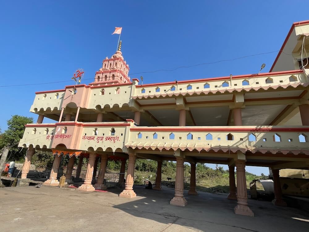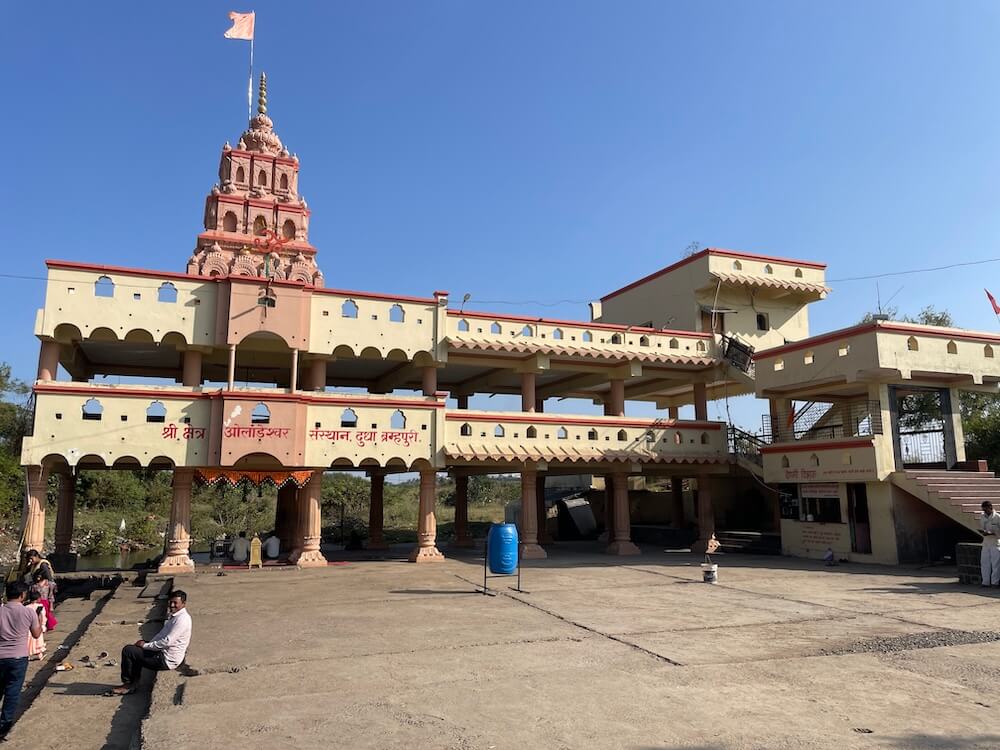 हिवरा आश्रम येथून जवळच असलेल्या या मंदिराचा परिसर हिरवाईने नटलेला आहे. मंदिरापासून नजीकच एक कुंड आहे आणि एका गोमुखातून त्यात निरंतर जलधारा पडत असते. या गोमुखाच्या खालील भागात गणेशाचे शिल्प आहे. ओलांडेश्वराचे मंदिर काही खांबांवर उभे आहे.