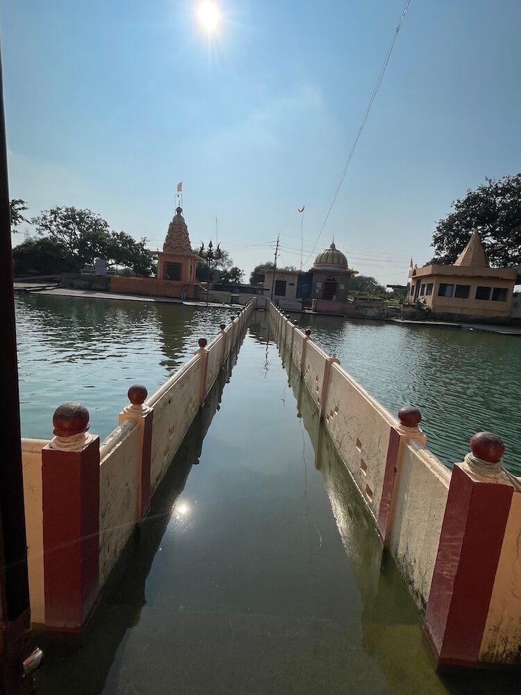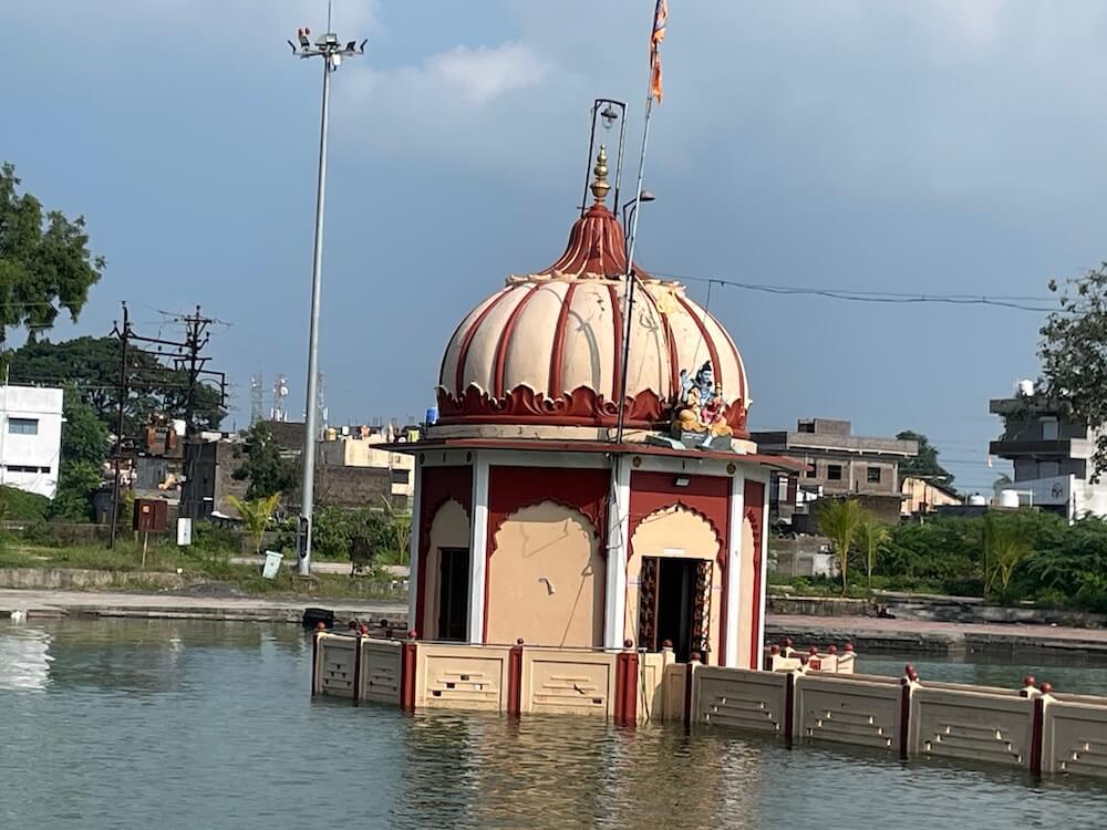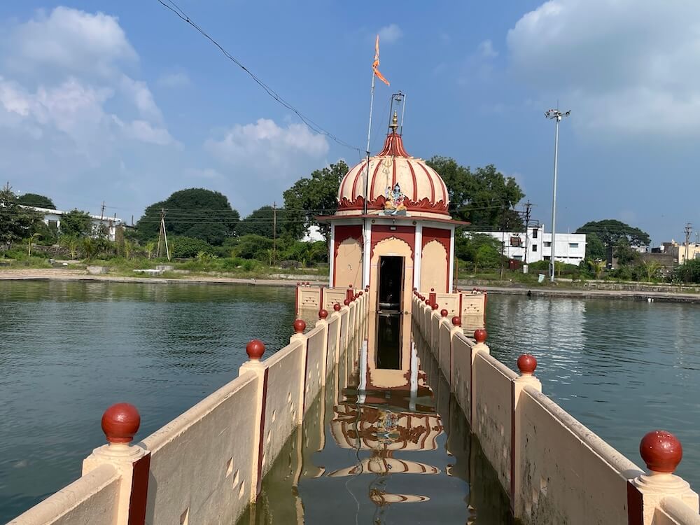 तलावाच्या मधोमध पद्मेश्वराचे छोटेसे अष्टकोनी मंदिर स्थित आहे. या मंदिरात अष्टकोनी प्रदक्षिणा मार्ग तयार करण्यात आला आहे. मंदिराच्या प्रवेशद्वाराच्या वर छताकडील भागावर शंकराची मूर्ती विराजमान आहे. मांडीवर पार्वती आणि पुत्र गणेशास घेतलेल्या रूपातील ही मूर्ती आहे. मंदिरास घुमटाकार शिखर आहे. त्यावर शंकूच्या आकाराचा आमलक व त्यावर कलश आहे. मंदिरात जमिनीवर पद्मेश्वराची पिंडी आहे. या पिंडीची शाळुंका संगमरवरात घडवलेली आहे. त्यावर काळ्या गुळगुळीत पाषाणाचे लिंग आहे. शिवपिंडीसमोर नंदीची छोटी संगमरवरी मूर्ती आहे. पिंडीवर पंचधातूचे मोठे अभिषेकपात्र आहे. आतील भिंतीमधील देवकोष्ठांत अन्नपूर्णा देवी, गणेश आणि दत्तात्रय यांच्या सुबक मूर्ती विराजमान आहेत. पद्मतीर्थाच्या बाजूला, मुख्य मंदिराकडून येणाऱ्या पुलाच्या समोरच्या भागात सिद्धिविनायक भालचंद्र गणपती मंदिर आहे. त्यात गणेशाची अनघड पाषाणमूर्ती विराजमान आहे. या मंदिराच्या बाजूला नागदेवतेचे तसेच महादेवाचे मंदिर आहे. या ठिकाणी या तीर्थ परिसरात नारायण महाराज, झिंगरे महाराज व रानडे बाबा अशा ऋषितुल्य संतांची समाधीस्थळे आहेत.