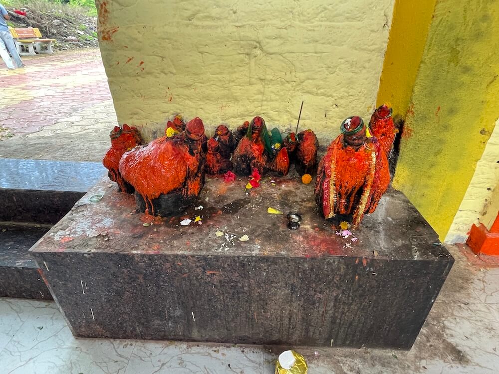 प्रांगणात, मंदिराच्या उजव्या बाजूला लहान मंदिर आहे. त्यात शंख, चक्र, गदा धारण केलेली चतुर्भुज नृसिंह मूर्ती आहे. मंदिराच्या मागील बाजूला कोरीव पाषाणात बांधलेली दोन कुंड आहेत. त्यातील एक स्नानकुंड आणि एक तीर्थकुंड आहे. स्नानकुंड भाविकांच्या स्नानासाठी आहे, तर तीर्थकुंडातील पाणी देवीच्या अभिषेकासाठी वापरले जाते. दोन्ही कुंडांत उतरण्यासाठी पायऱ्या आहेत. प्रांगणात पिण्याच्या पाण्याची विहीर आहे.
