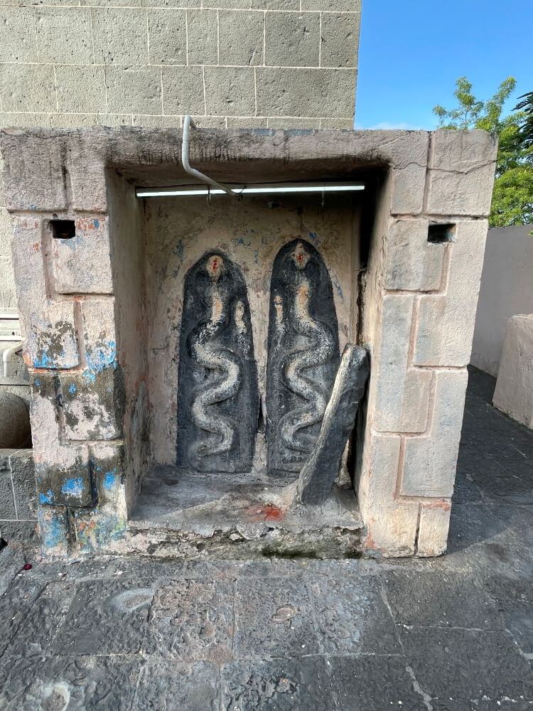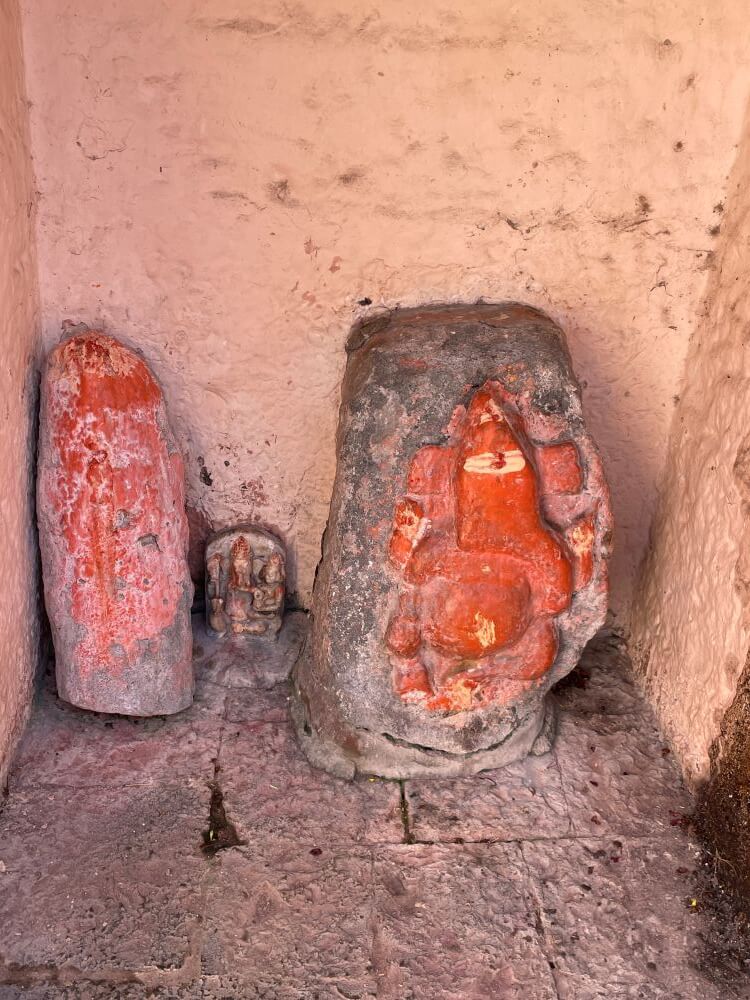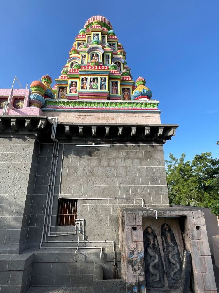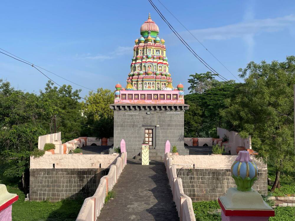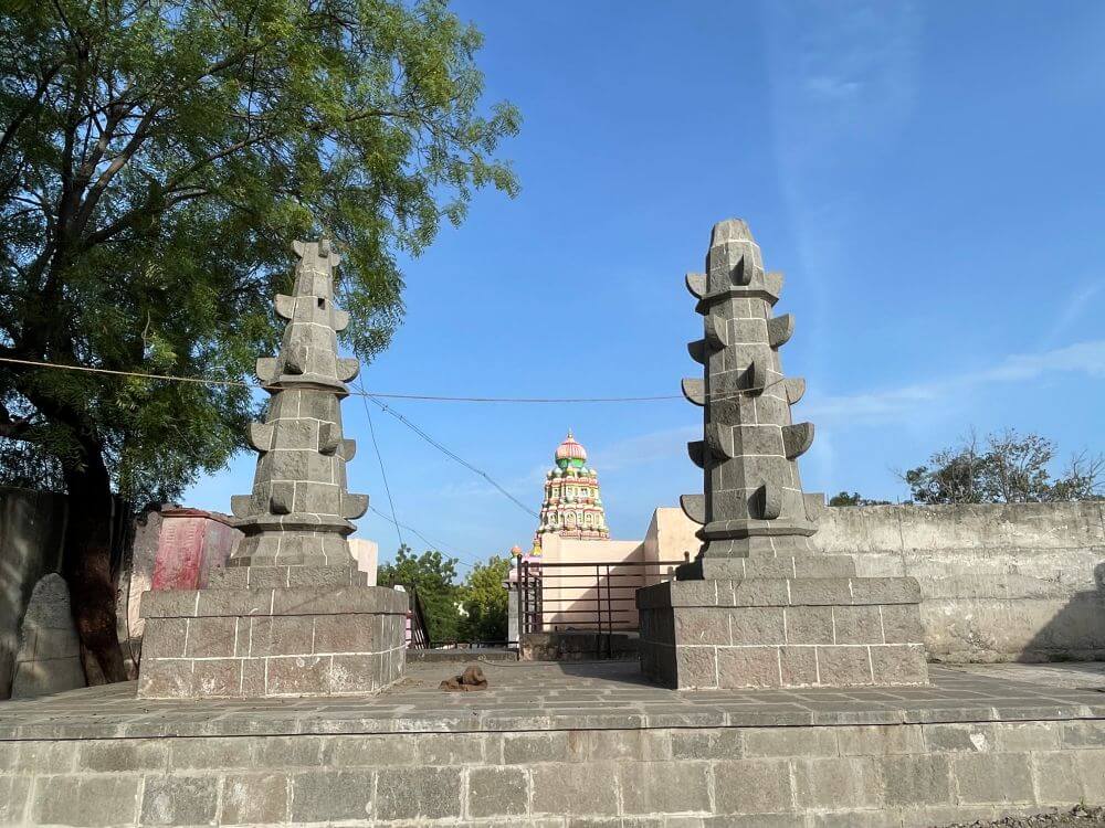 पुलाच्या प्रारंभ बिंदूवर दोन्ही बाजूला दोन स्तंभ व त्यामध्ये जाळीदार झडपा आहेत. या स्तंभांच्या दोन्ही बाजूला दोन लहान मंदिरे आहेत. त्यापैकी डावीकडील मंदिरात शिवपिंडी व उजवीकडील मंदिरात गणपतीची मूर्ती आहे. तलावाच्या काठावर, पुलाच्या समोर डाव्या व उजव्या बाजूला असलेल्या दोन चौथऱ्यांवर अष्टकोनी दीपमाळा आहेत. तलावाचा काठ पुलापेक्षा उंच असल्यामुळे पुलावर उतरण्यासाठी पायऱ्या आहेत. पूल व मंदिराच्या चौथऱ्यास चारही बाजूंनी सुरक्षा कठडा आहे. मंदिराभोवती असलेल्या सुरक्षा कठड्यात मोठे रांजण आहेत. असे सांगितले जाते की पुराच्या वेळी मंदिरात पाणी शिरू नये म्हणून ही रांजणांची रचना केलेली आहे.