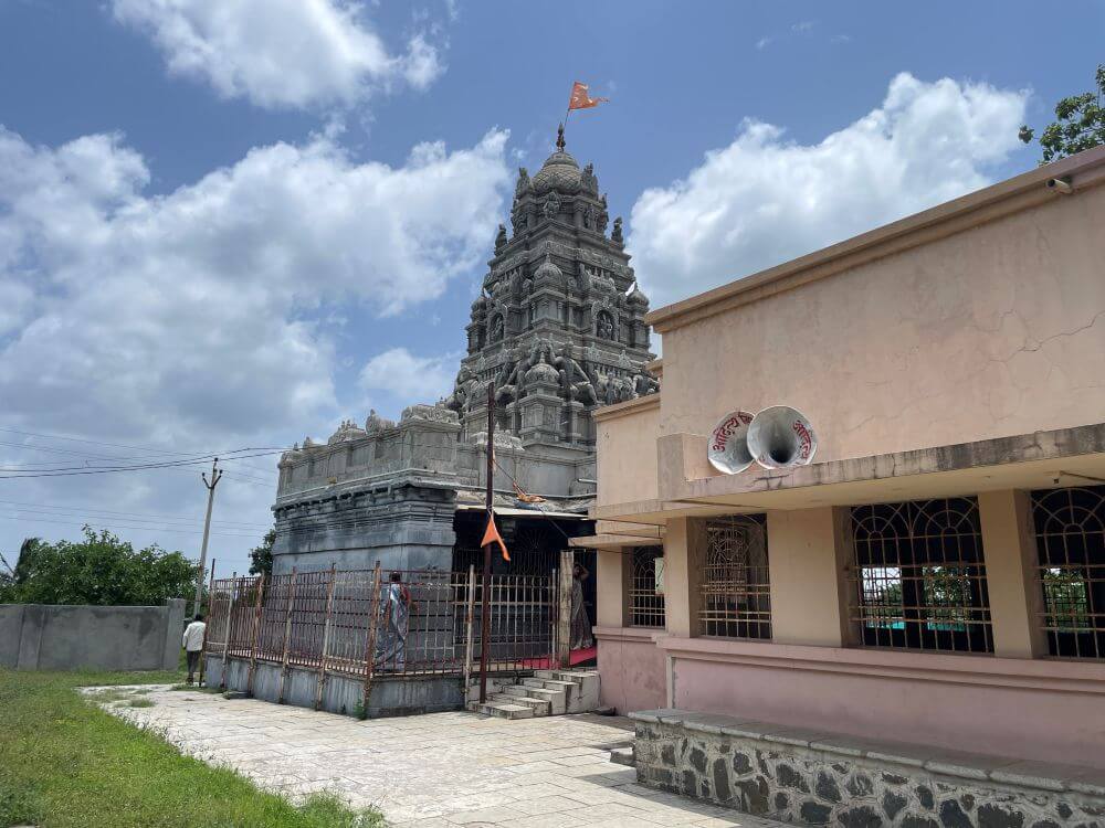 मंदिरासमोर प्रांगणात असलेल्या मोठ्या पटांगणात भाविकांच्या सोयीसाठी लोखंडी खांब टाकून एक मोठा मंडप उभारलेला आहे. सभामंडप, अंतराळ व गर्भगृह अशी या मंदिराची संरचना आहे. लांबीने मोठा असलेल्या या सभामंडपात हवा व प्रकाश येण्यासाठी मोठ्या खिडक्यांची रचना आहे. सभामंडपाच्या पुढील बाजूस अंतराळ आहे. हे अंतराळ व गर्भगृह हेच पूर्वीचे मूळ मंदिर असावे, असे भासते. अंतराळात हेमाडपंती रचनेचे बांधकाम आहे. त्यात चार दगडी स्तंभ आहेत. त्यावर विविध भौमितिक आकार कोरलेले आहेत. या स्तंभांच्या शिर्षभागी भारवाहक उलटे नाग कोरलेले आहेत. जाणकारांच्या मते अशी प्रतिमा असलेली मंदिरे यादवकाळातील व भूमिज शैलीतील ठरतात. या मंदिराच्या जिर्णोद्धाराच्या वेळी केलेल्या उत्खननात एक शिलालेख सापडला होता. तो शिलालेख म्हणजे दानपत्र असावे. त्यात शके १३९१ आणि १४५९ अशा दोन तारखा वाचता येतात. त्यामुळे त्या पूर्वीचे हे मंदिर असल्याचे सिद्ध होते.
