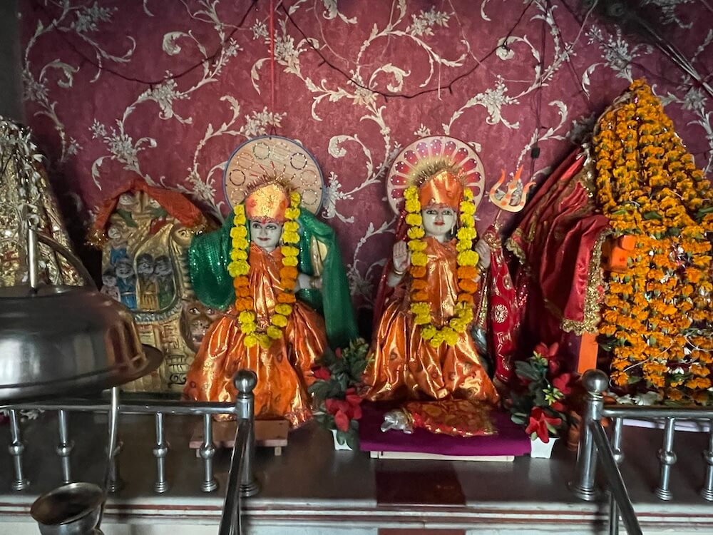 In addition to Ahir devotees, people from various other communities visit the temple for worship. Members of the Ahir diaspora settled abroad make it a point to seek blessings here upon returning to their village. Daily prayers and Aarti are conducted with regularity and numerous festivals are celebrated throughout the year. The Ahir community celebrates Janmashtami in a traditional manner, marked by processions, Bhajans (devotional songs), Kirtan and Maha Aarti. On the first day of Sharadiya Navratri, the Ghatasthapana (ritual installation of the sacred jar) is performed. For all nine days, the five goddesses are worshipped in various forms every morning and evening, accompanied by religious and cultural programmes. On the day of Ashtami, the courtyard hosts a Havan (sacred fire ritual), Maha Aarti, Mahaprasad (consecrated feast) and Raas-Garba dances. Finally, on the day of Dussehra, the sacred jars are immersed in the waters of the Narmada.