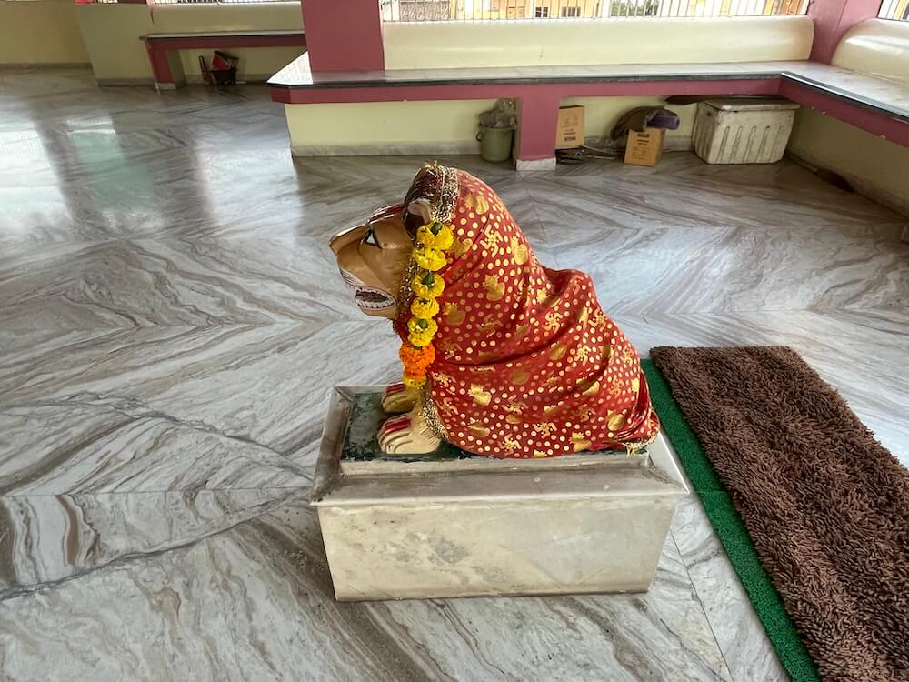 Devotees hold a firm belief that the Goddess is provoked to wrath if one seeks her Darshan after consuming meat, fish or intoxicants. Each of these sanctums is topped with an Urushringa style spire featuring a two-tiered Amalaka and a Kalash (pinnacle), while five domed spires crown the Sabhamandap.
