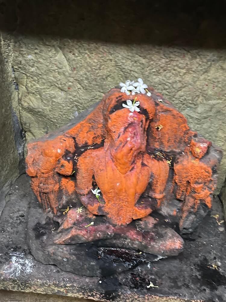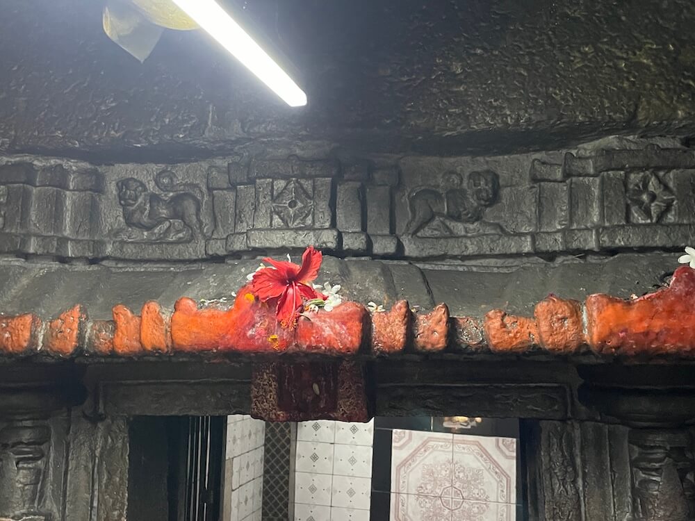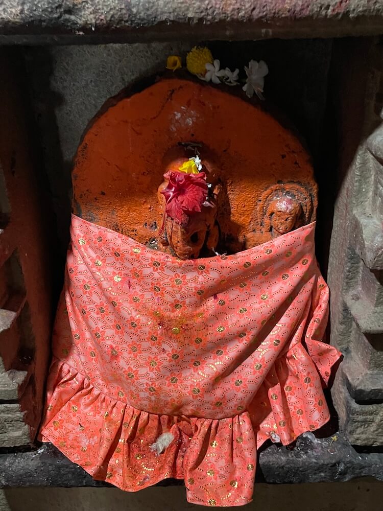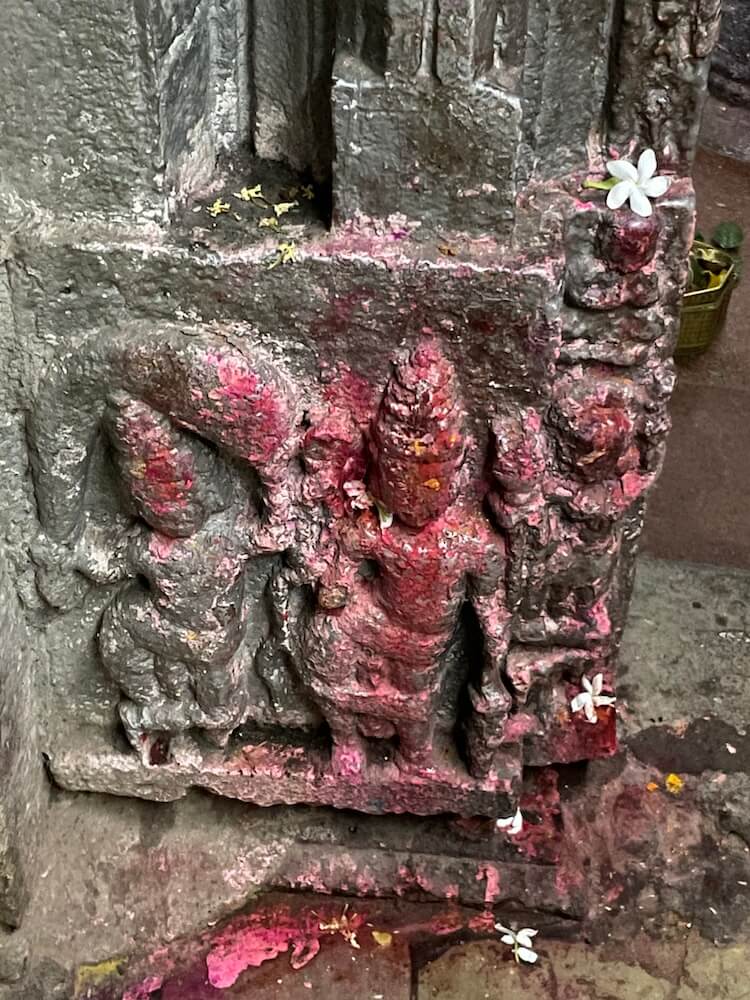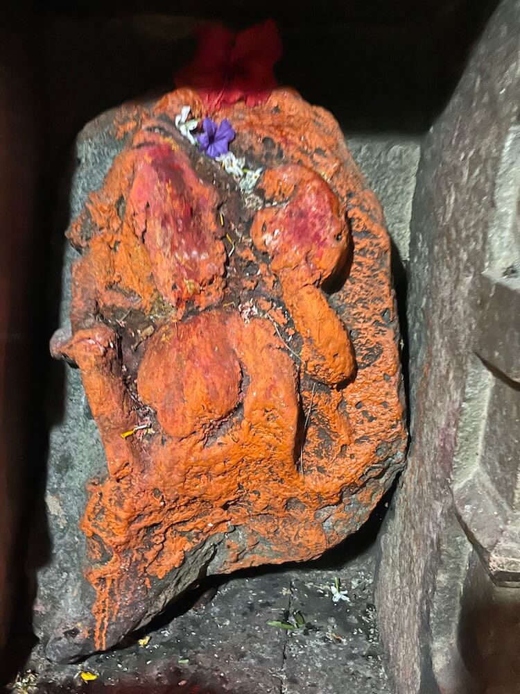 सभामंडपात अंतराळाच्या प्रवेशद्वाराच्या दोन्ही बाजूला देवकोष्ठकांत शेंदूरचर्चित प्राचीन मूर्ती आहेत. पुढे अंतराळात डाव्या व उजव्या बाजूच्या भिंतीतील देवकोष्ठकांत दोन प्राचीन मूर्ती आहेत.