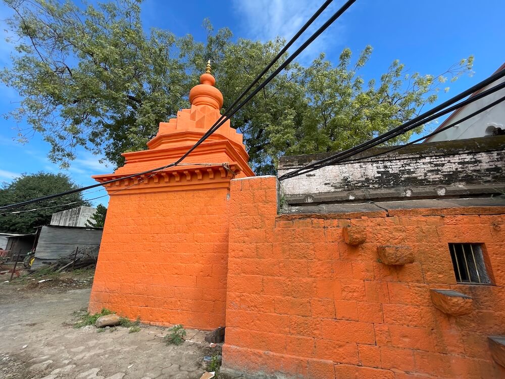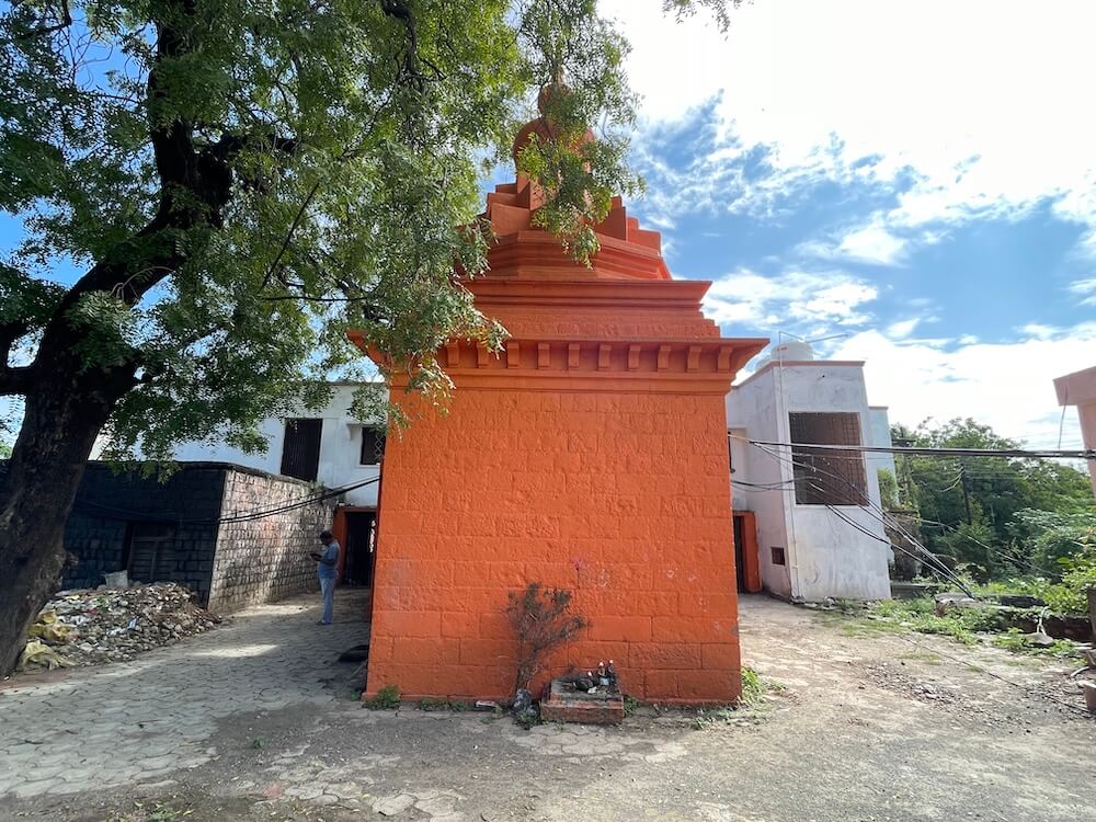 मंदिराच्या बाह्य बाजूने प्रदक्षिणा मार्ग आहे. गर्भगृहाच्या छतावर द्रविडी शैलीतील तीन थरांचे चौकोनी शिखर आहे. शिखरात प्रत्येक थरात कुट व शाल रचना आहे, तर शीर्षभागी स्तूपिका आहे. स्तूपिकेवर कळस व ध्वजपताका दिसून येते.